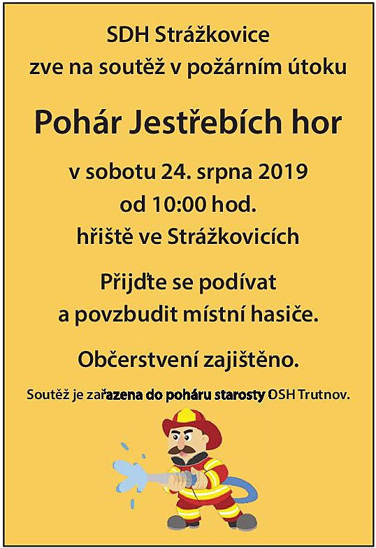 Zveme Vás na hasičskou soutěž v požárním útoku do Strážkovic v sobotu 24. srpna 2019 od 10:00 hod.