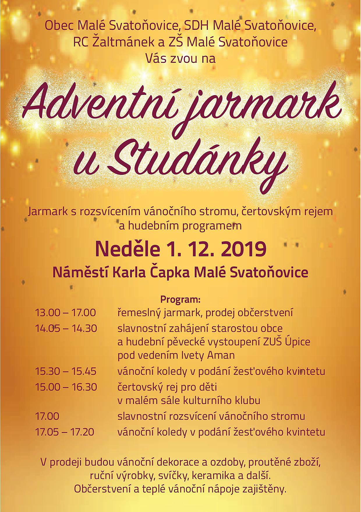 Pozvánka na první adventní neděli do Malých Svatoňovic
