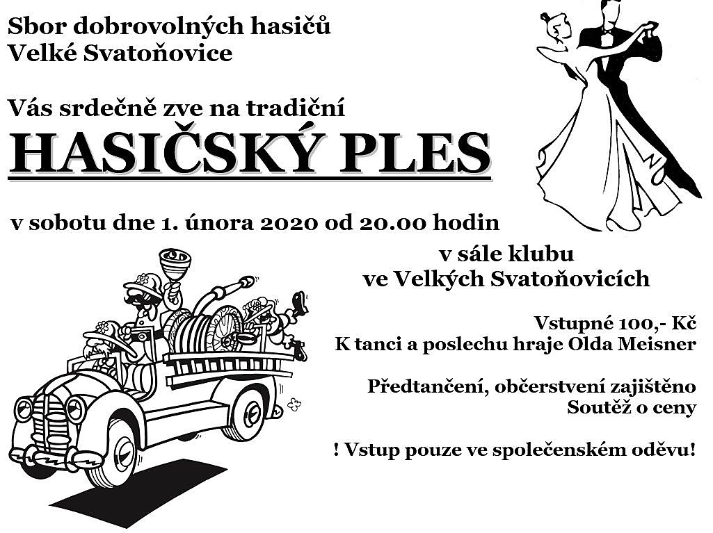 Sbor dobrovolných hasičů Velké Svatoňovice Vás zve na tradiční ples!