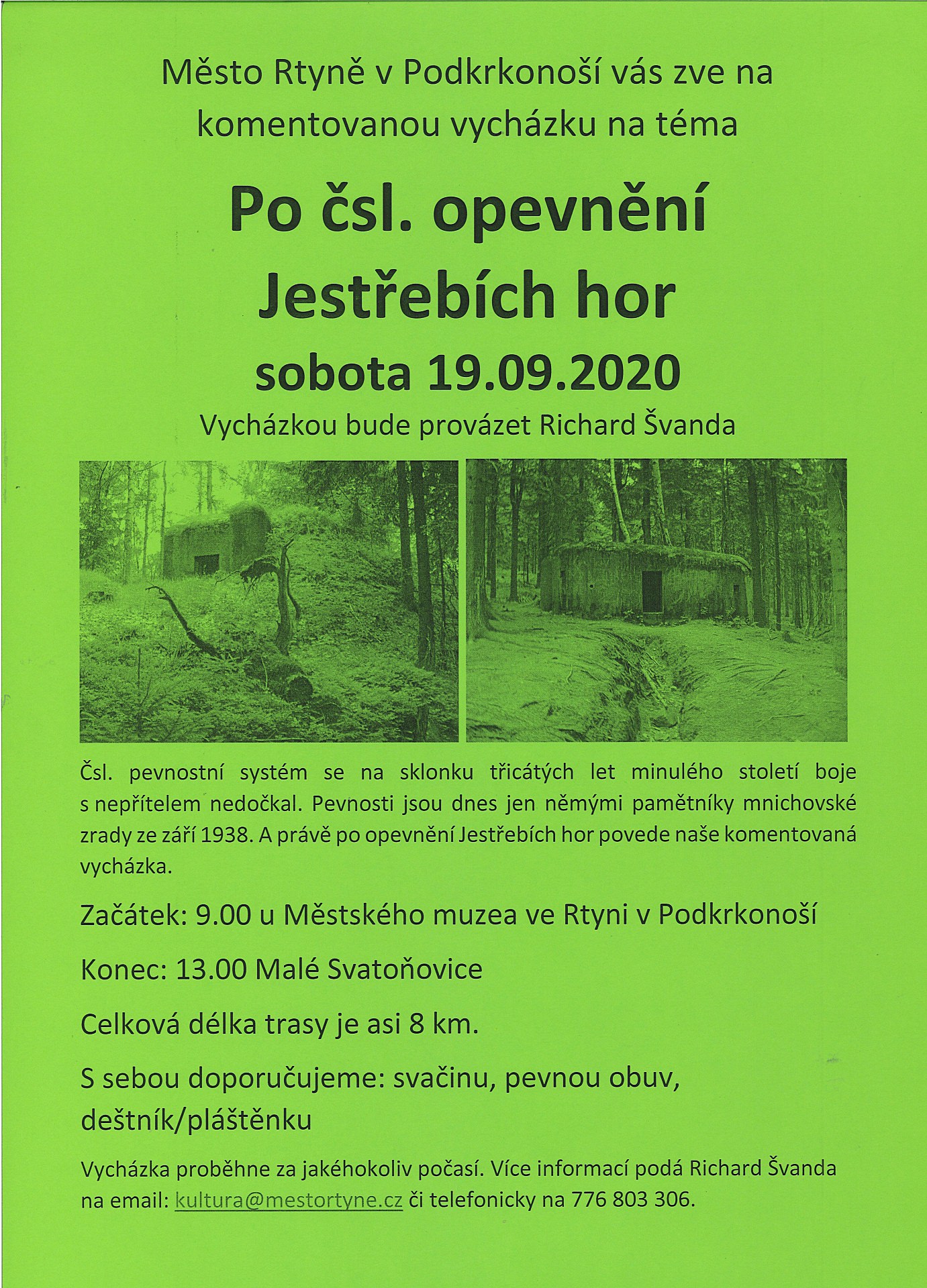 Máte rádi vycházky? Nebo se zajímáte o věci spojené s Druhou světovou válkou? Tak právě pro Vás je vhodná tato vycházka, která se bude konat v sobotu 19.září. Více informací naleznete na plakátu.