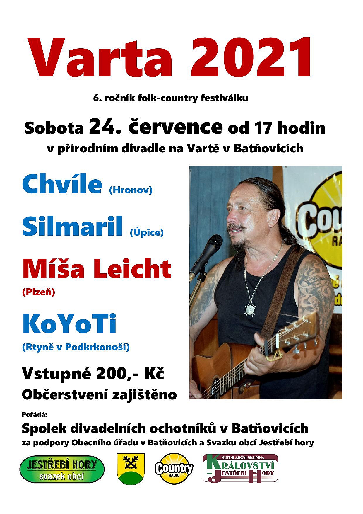 V sobotu 24. července 2021 se můžete těšit již na šestý ročník folk-country festiválku na Vartě v Batnovicích!