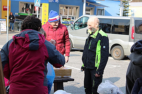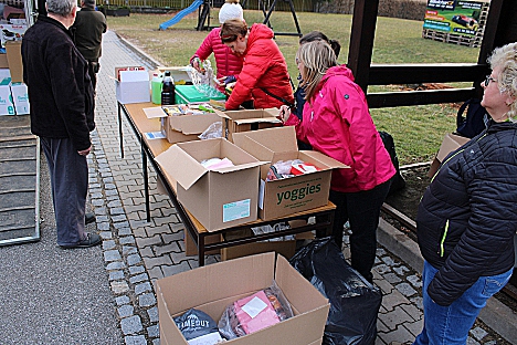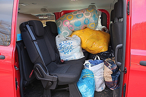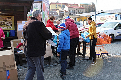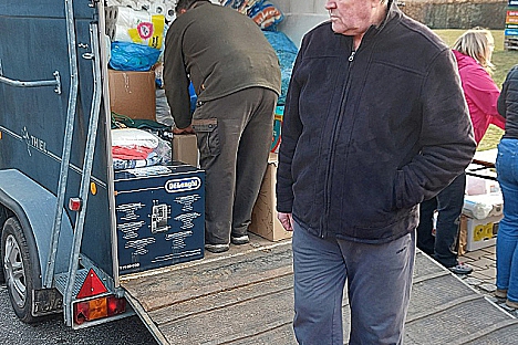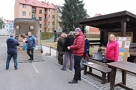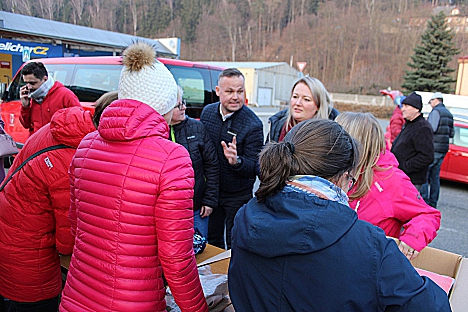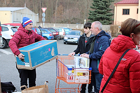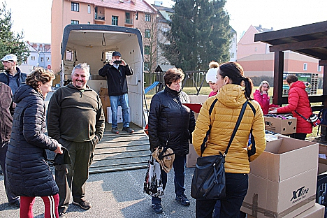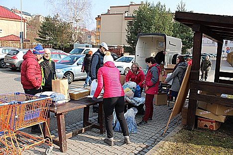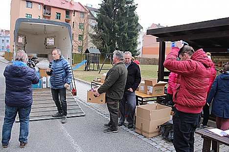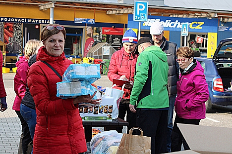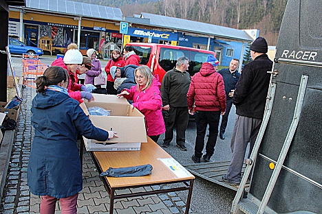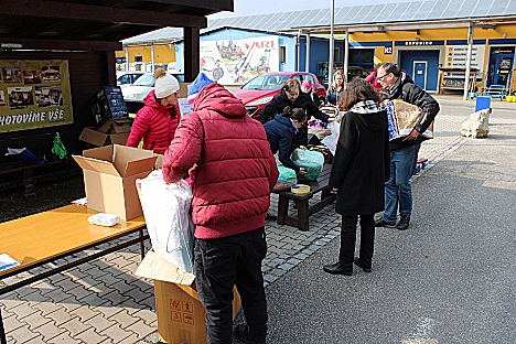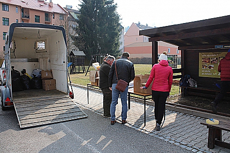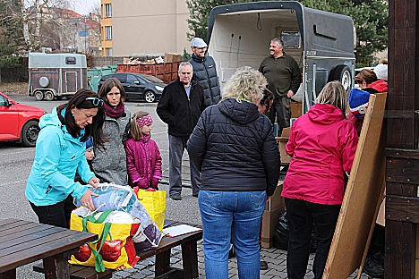 Během čtyř hodin sem více než šedesát lidí přineslo dary, které zaplnily dodávku a velké auto s vlekem. Materiál pak putoval do skladu humanitární pomoci v Hradci Králové – Plotištích.