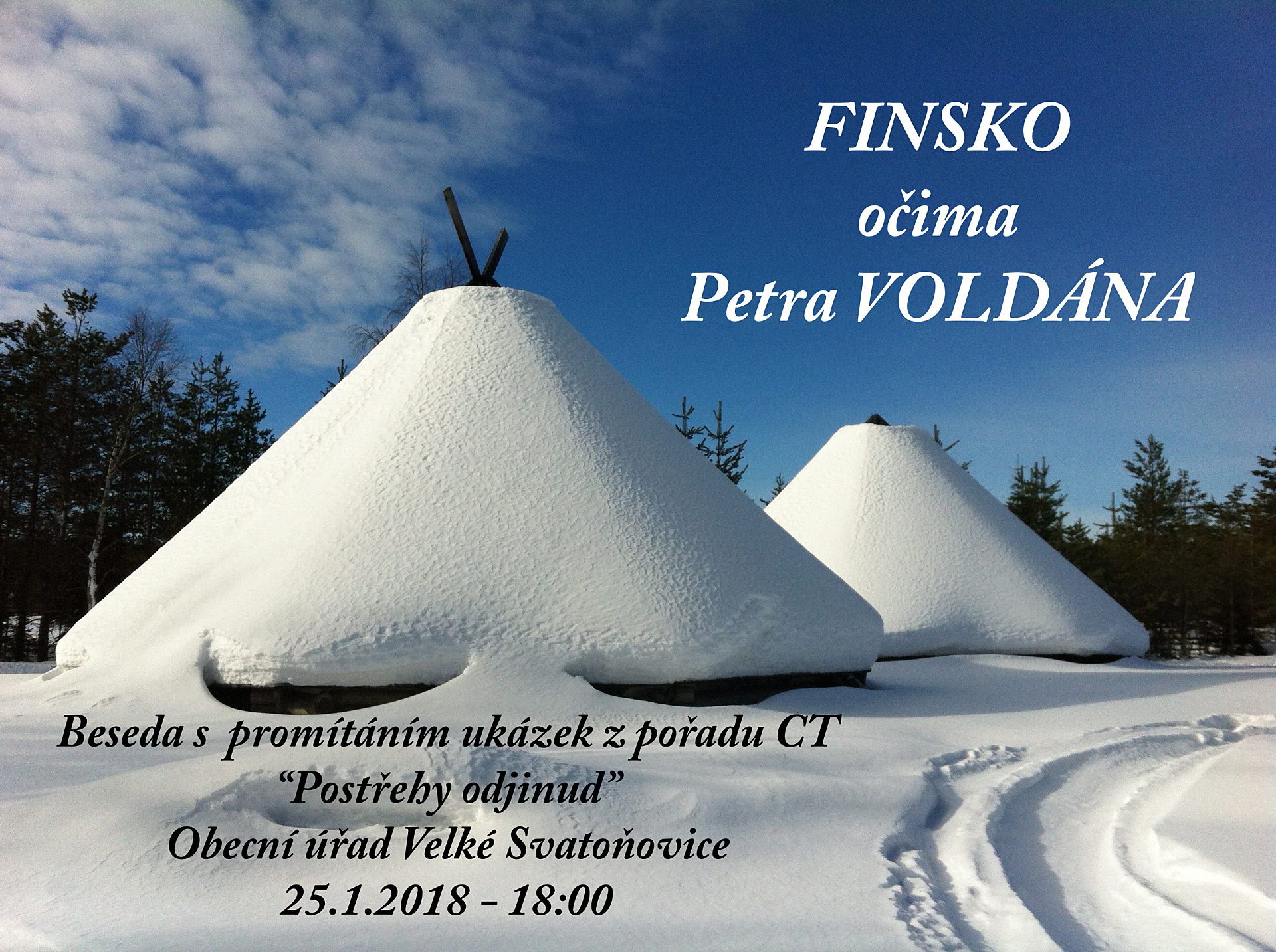 V besedě s Petrem Voldánem se tentokrát můžete podívat do země, proslulé nejen saunami, ale také světoznámým designem a architekturou. Navštívíte zemi, kde budují sídliště v lesích, kde traktor rovná se Zetor, kde správný chléb má díru a můžete bydlet v ledovém hotelu. Prohlédnete si varhany z ocele, zajímavosti ze života na polárním kruhu a další momenty z televizních „Postřehů odjinud“ – zkrátka dozvíte se, jaké je „Finsko očima Petra Voldána“. Publicista, dlouholetý rozhlasový zpravodaj a spolupracovník ČT Ostrava Petr Voldán Vám představí také finského kolegu Ježíška a Santa Clause a připomene mimo jiné i „zlaté“ Helsinky manželů Zátopkových při ZOH 1952…