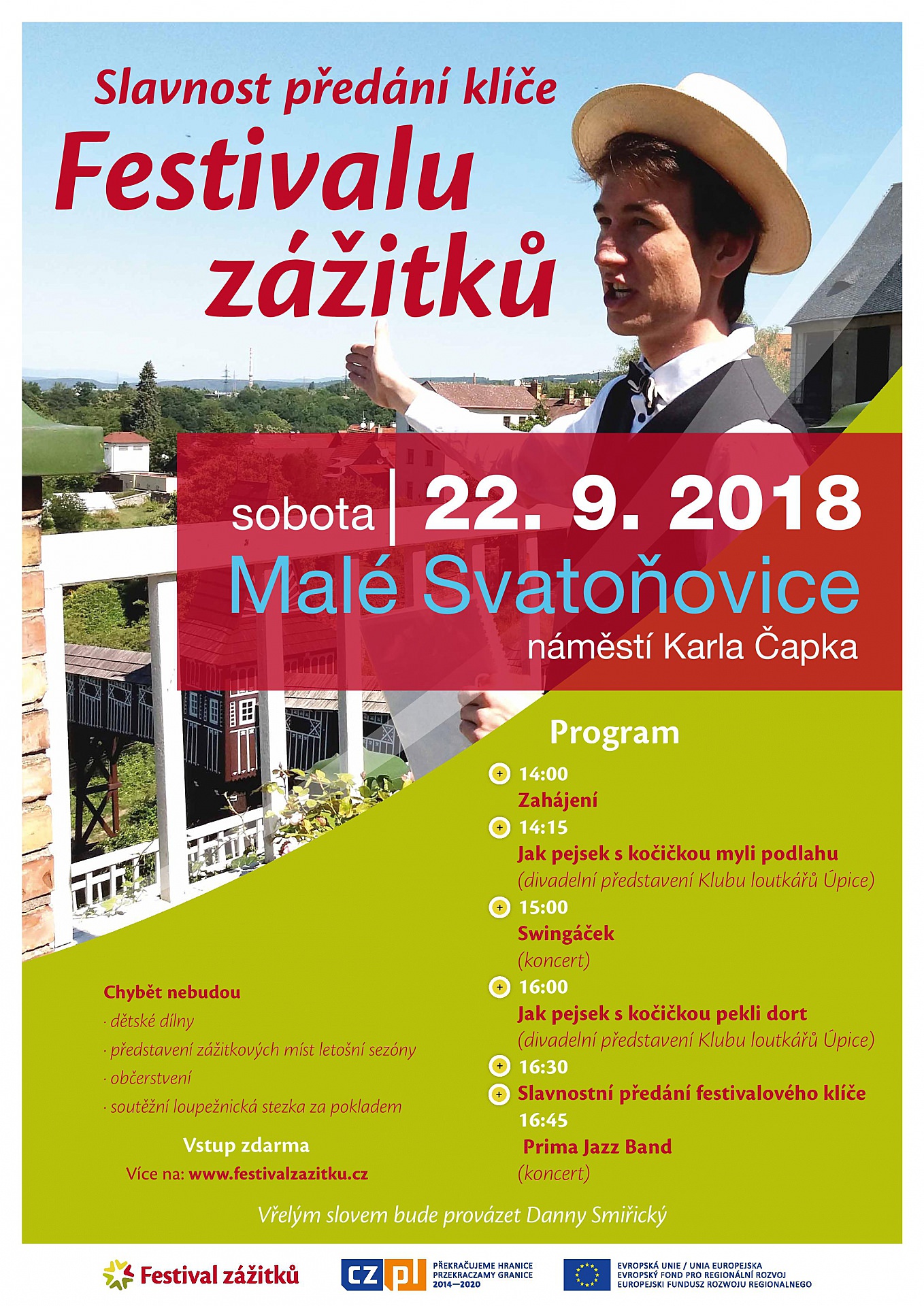 V sobotu 22. 9. 2018 od 14:00 na náměstí Karla Čapka v Malých Svatoňovicích se koná slavnostní předání festivalového klíče.