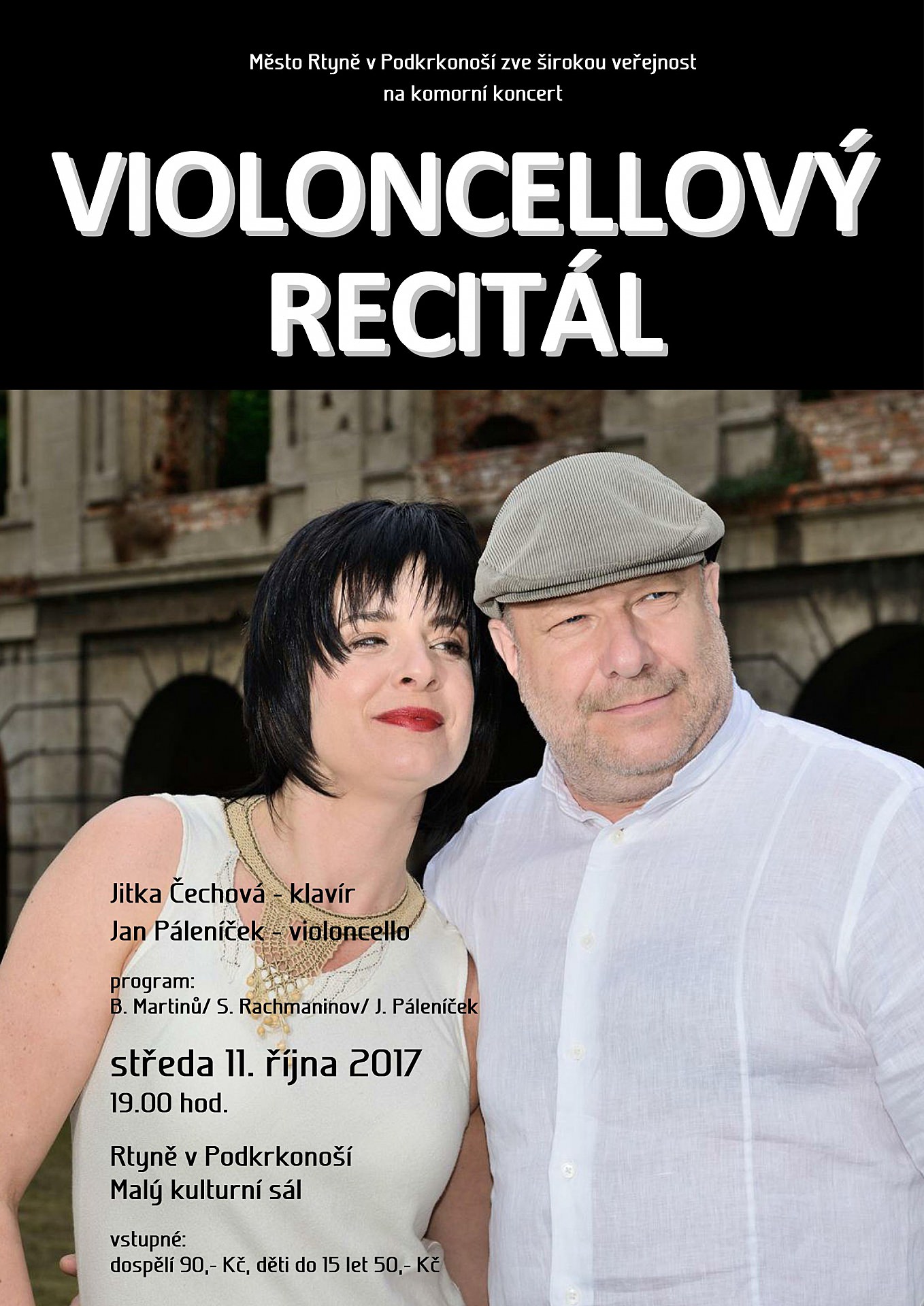 Město Rtyně v Podrkonoší zve širokou veřejnost na komorní koncert - Violoncellový recitál Jitky Čechové a Jana Páleníčka.