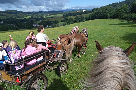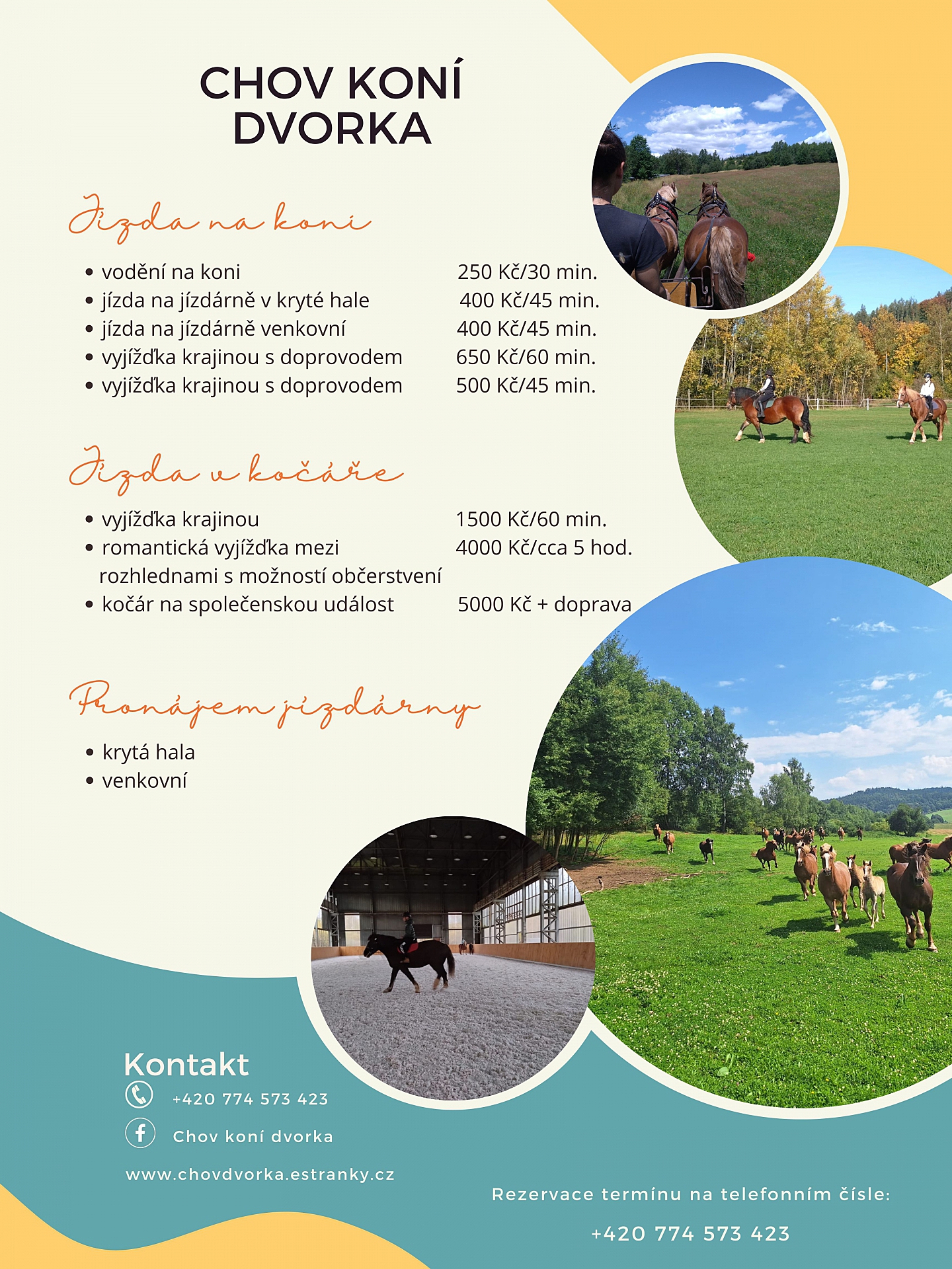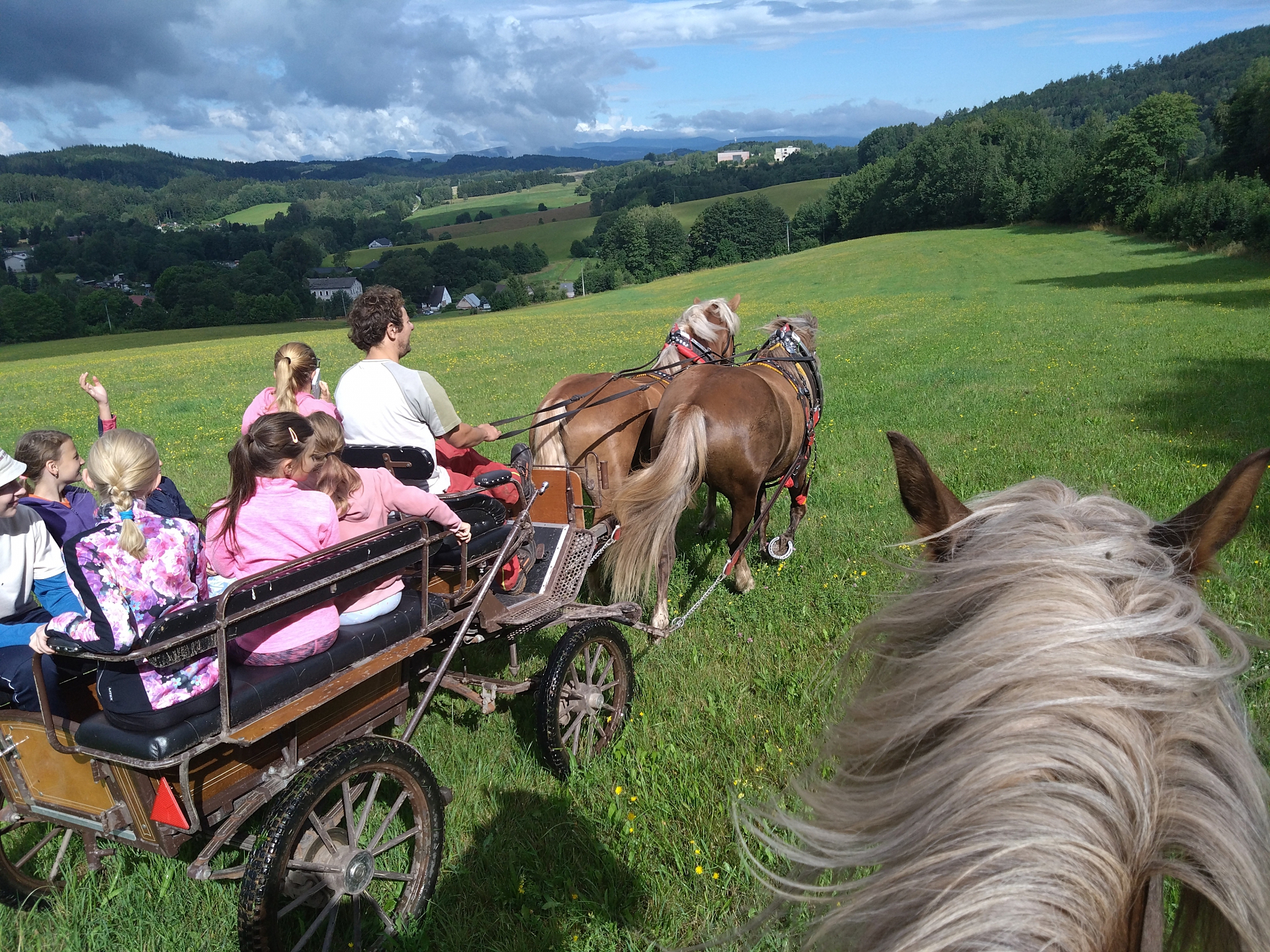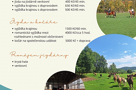 Kromě klasické jízdy na koni s vodičem nabízí také vyjížďky do přírody, kde si můžete vychutnat krásy okolní krajiny z koňského hřbetu.
