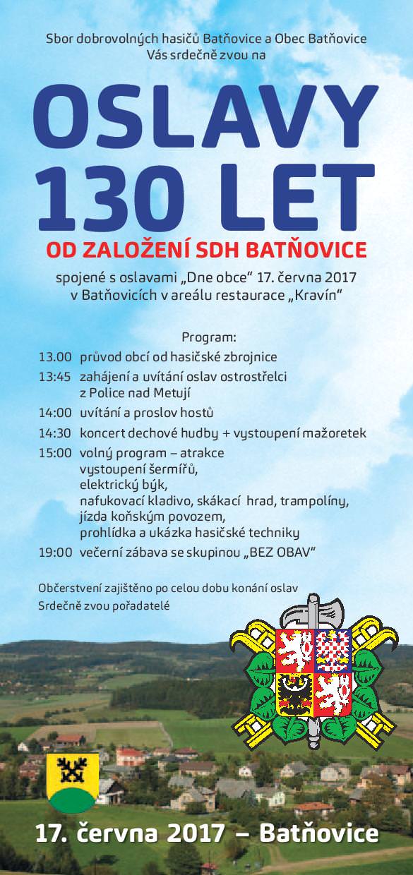 Oslavy 130 let od založení SDH Batňovice spojené s oslavami Dne obce