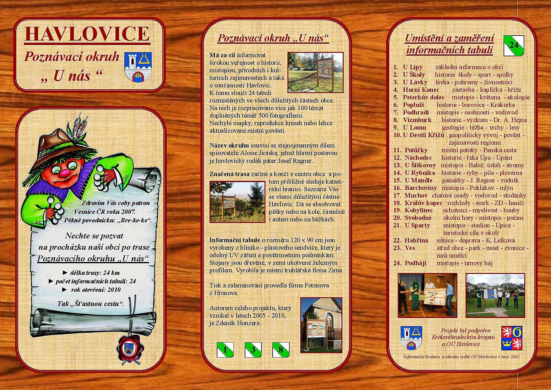 Tato naučná stezka vznikla v roce 2010. Vytvořil ji havlovický patriot Zdeněk Honzera. Celá naučná stezka má 24 zastávek a je dlouhá 24 km. Vede přes zajímavá místa obce Havlovice a pomáhá nám seznámit se s touto vesnicí. Většinou cesta vede po asfaltových komunikacích. Je vhodná pro pěší a cyklisty.