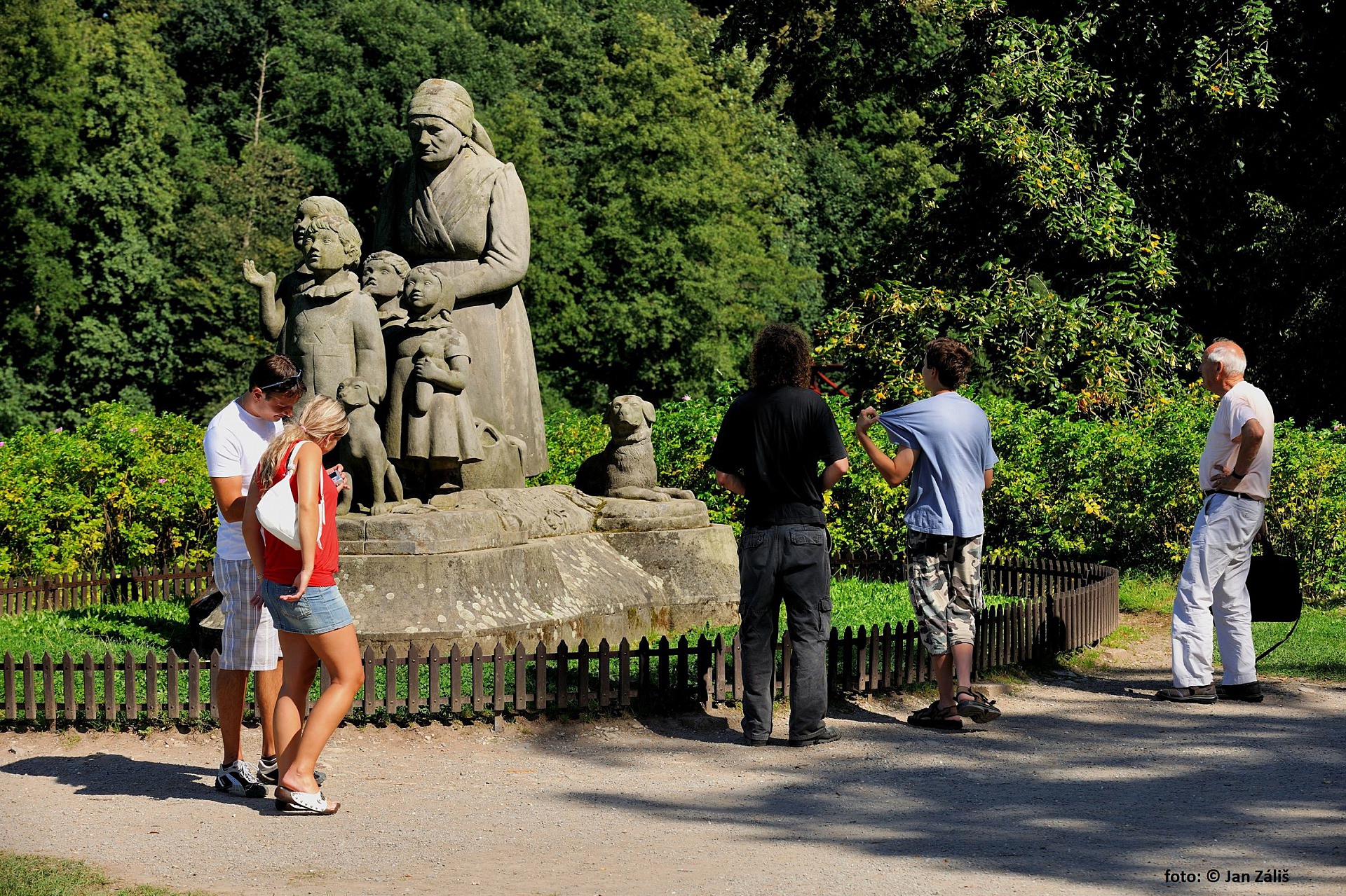 Za kostelem Nanebevzetí Panny Marie, kde se spisovatelka vdávala, půjdeme Havlíčkovou ulicí vpravo a budeme sledovat červenou turistickou značku. Vydáme se po Naučné stezce Babiččino údolí, která nás povede lesem nazývaným Bažantice podél řeky Úpy. Kousek od našeho cíle spatříme ještě Lovecký pavilon z roku 1800. Jen pár set metrů od něj se nachází známý zámeček, který Kateřina Vilemína Zaháňská nechala upravit v empírovém stylu. Po jeho návštěvě se vydáme dále Babiččiným údolím. Dojdeme až k pomníku Babičky s vnoučaty, kde se můžeme vyfotit, občerstvit či navštívit Herecké muzeum. Pokud bychom pokračovali ještě o necelý kilometr dále, dojdeme až k Starému bělidlu se známým Viktorčiným splavem.