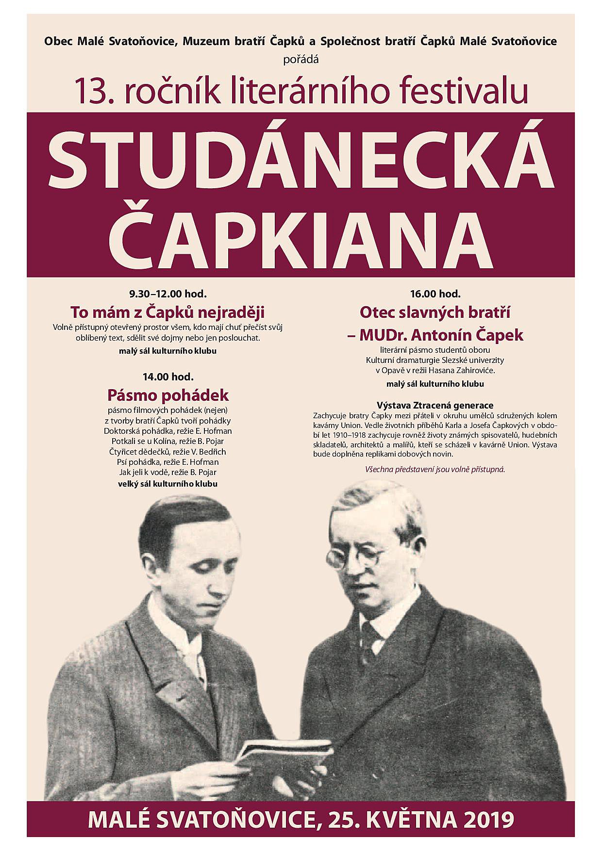 Zveme Vás na 13. ročník literárního festivalu STUDÁNECKÁ ČAPKIANA v Malých Svatoňovicích.