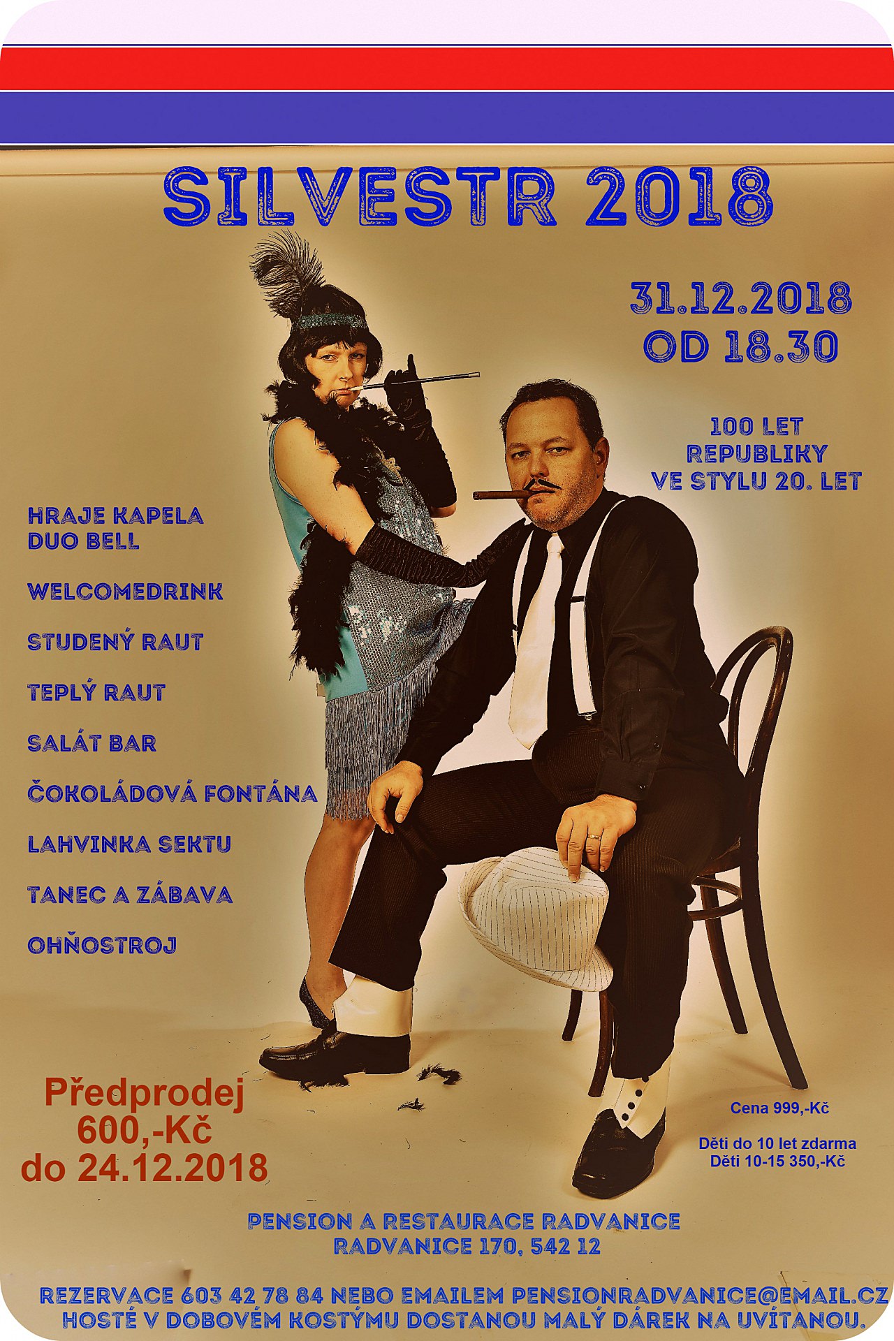 Do 24.12.2018 je možné Silvestrovské menu včetně programu koupit za akční cenu 600,-Kč na osobu. Více informací na plakátu.