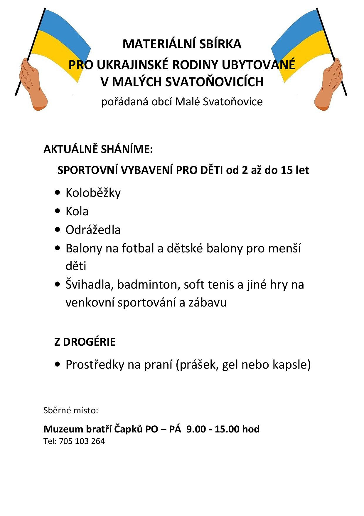 Materiální sbírka pokračuje, ale nyní je určena pro rodiny, které se ubytují v Malých Svatoňovicích.