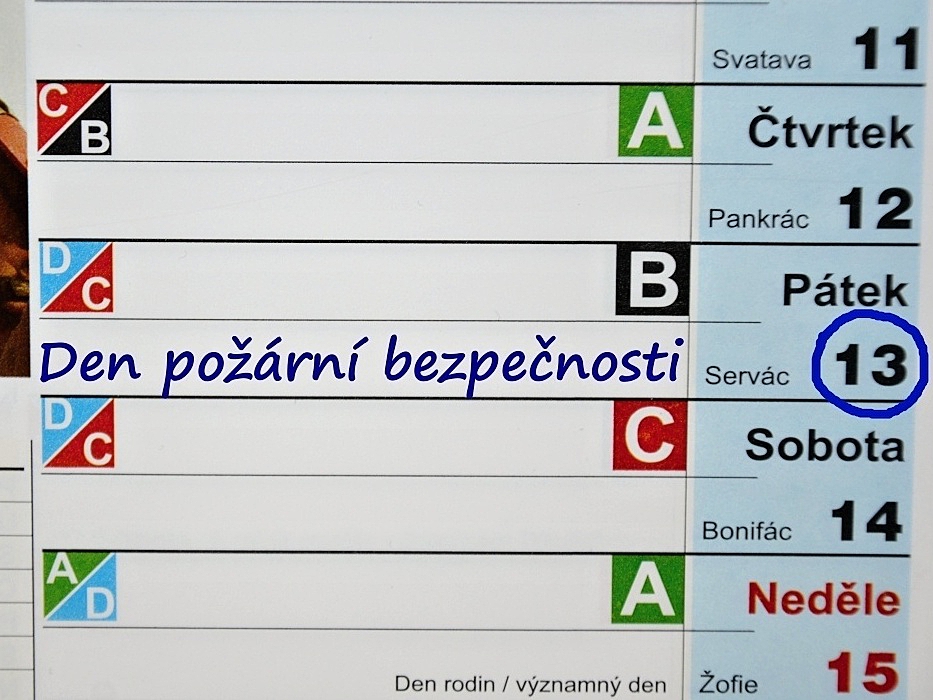 Den požární bezpečnosti, který vyhlašuje Česká asociace hasičských důstojníků má své pevné místo v kalendáři = pátek 13. V letošním roce připadne na pátek 13. května 2022