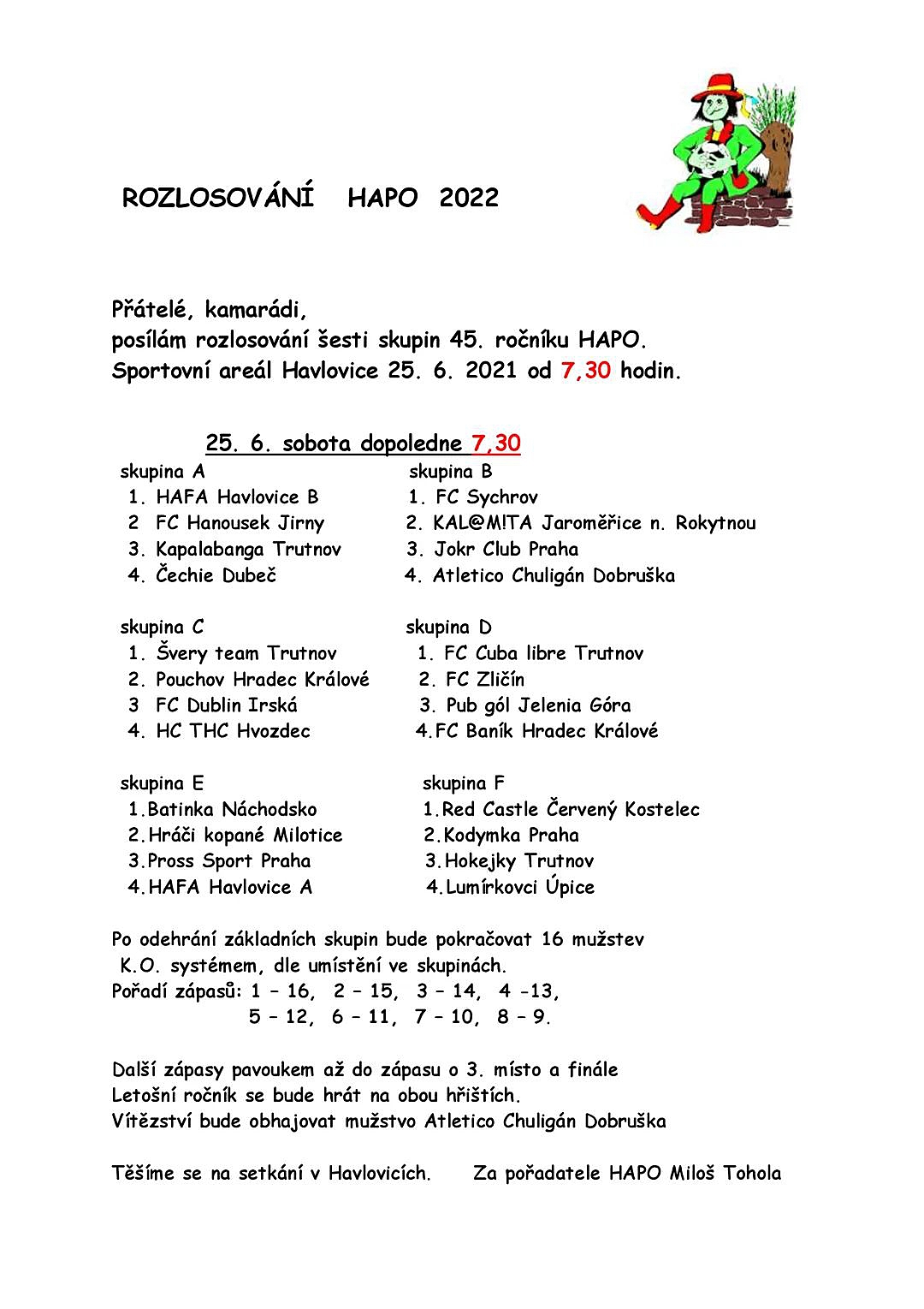 Populární HAPO se bude hrát poslední červnovou sobotu.