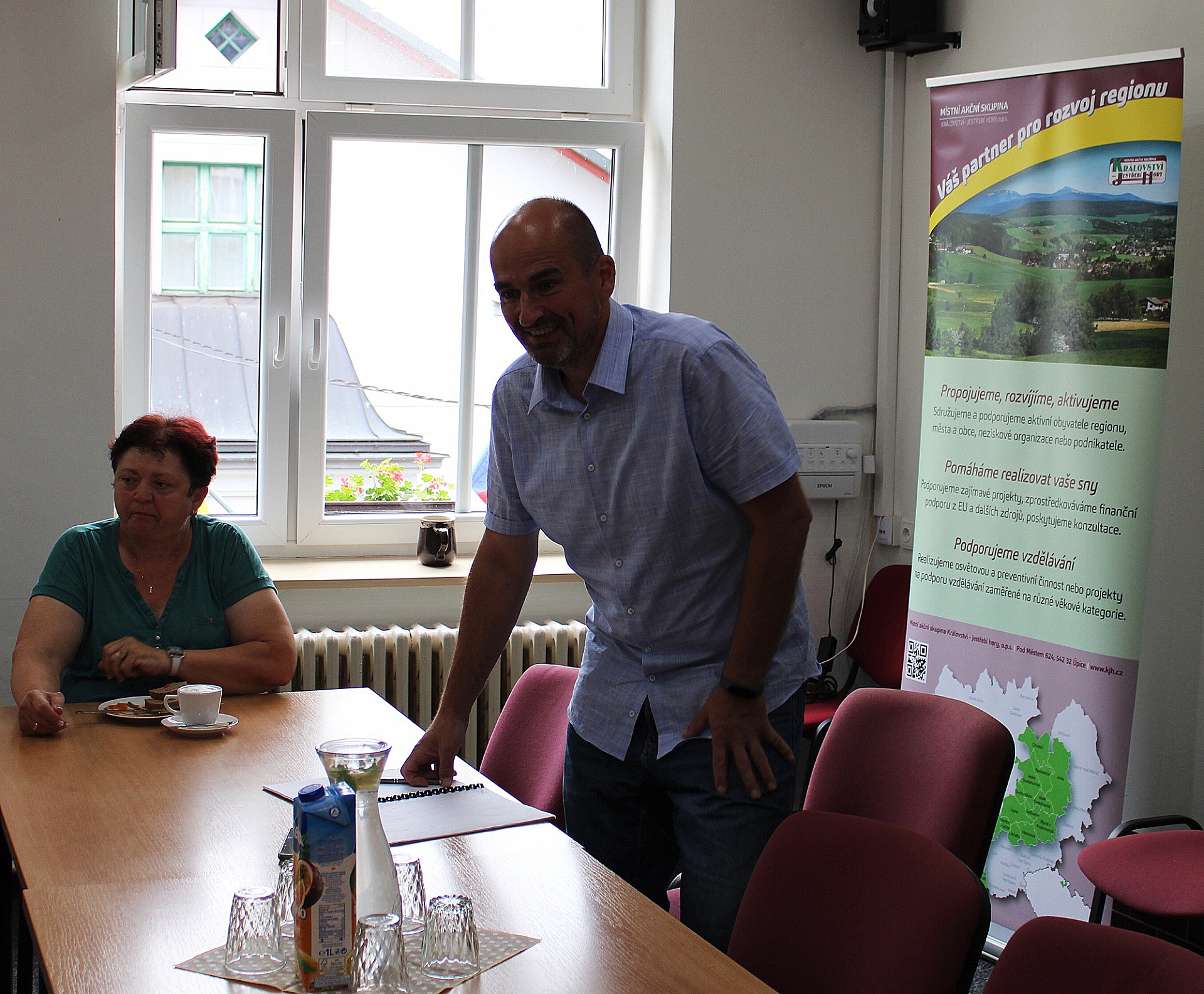 Ředitel MAS Jan Balcar přítomné upozornil na důležité události, které se blíží. Ve čtvrtek 8. září uspořádáme v Havlovicích tradiční Olympiádu pro starší a dříve narozené. Ve dnech 14. - 16. září pak ve spolupráci s Celostátní sítí pro venkov zorganizujeme pro zájemce inspirativní výjezd na Nymbursko. Zaměřený bude na projekty Programu rozvoje venkova, které cílí na zemědělství nebo cestovní ruch. V sídle MAS byla řeč také o nové výzvě v rámci operačního programu Zaměstnanost. "Otevírá se tu prostor pro práci se seniory, mladými matkami a dalšími cílovými skupinami. Pro každé dvě až tři obce bychom měli místního lídra, přes nějž by se tato problematika řešila," vysvětlil Jan Balcar. Starostky a starostové na úpickém setkání neformálně projednali i další témata. Debatovali například o tom, jak řešit sousedské spory. V nejmenované obci musí dokonce řešit stížnosti na přemnožené komáry. :)