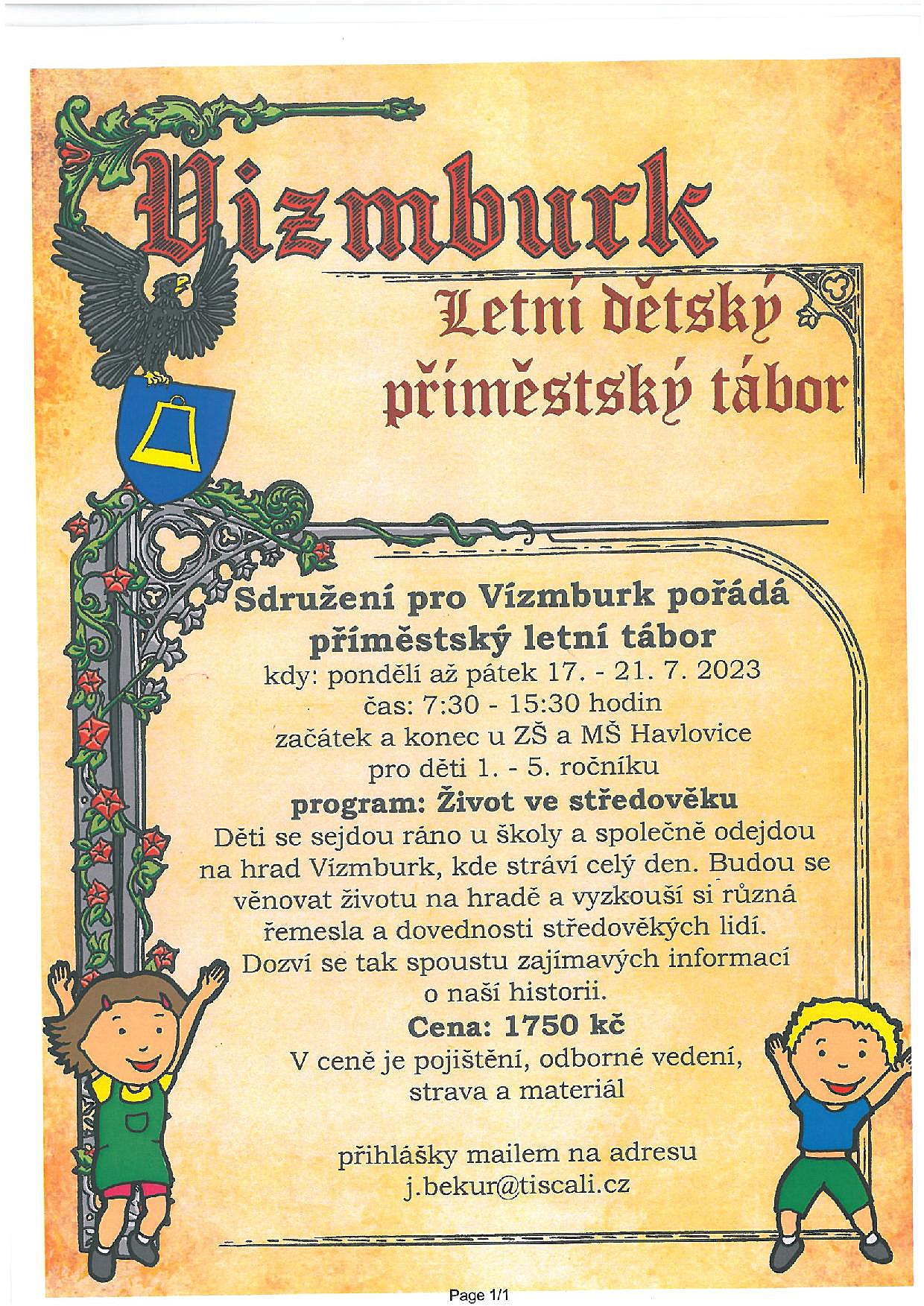 Letní dětský příměstský tábor na hradě Vizmburk, od pondělí do pátku 17. - 21. 7. 2023.