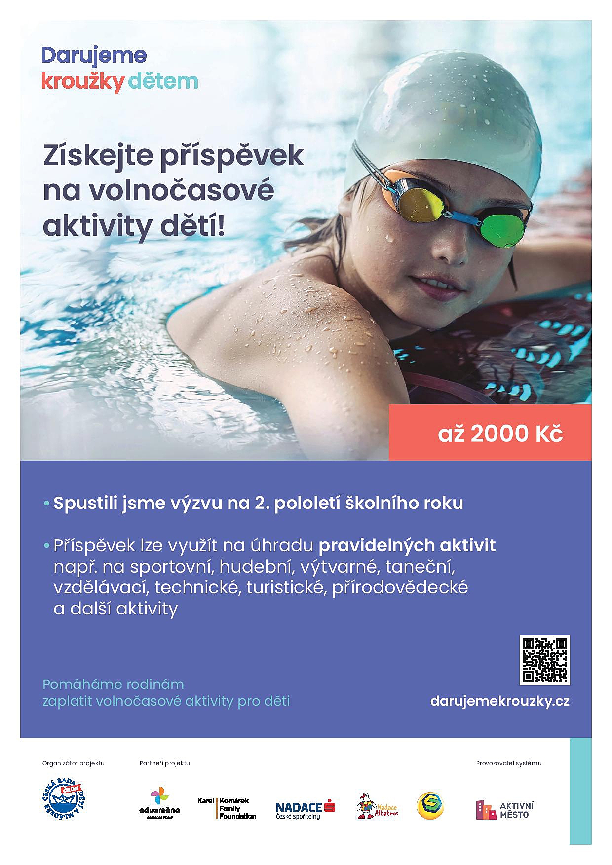 Projekt pomáhá českým i ukrajinským rodinám v tíživé finanční situaci s úhradou nákladů na volnočasové aktivity dětí. V projektu mohou rodiče získat příspěvek až 2000 Kč pro každé dítě na úhradu nákladů za kroužky a další aktivity ve volném čase v 2. pololetí školního roku 2022/2023. Projekt je zaměřen na podporu rodin v ČR, které pobírají “přídavek na dítě”, “příspěvek na péči” či “odměnu pěstouna/ příp. příspěvek při pěstounské péči”
