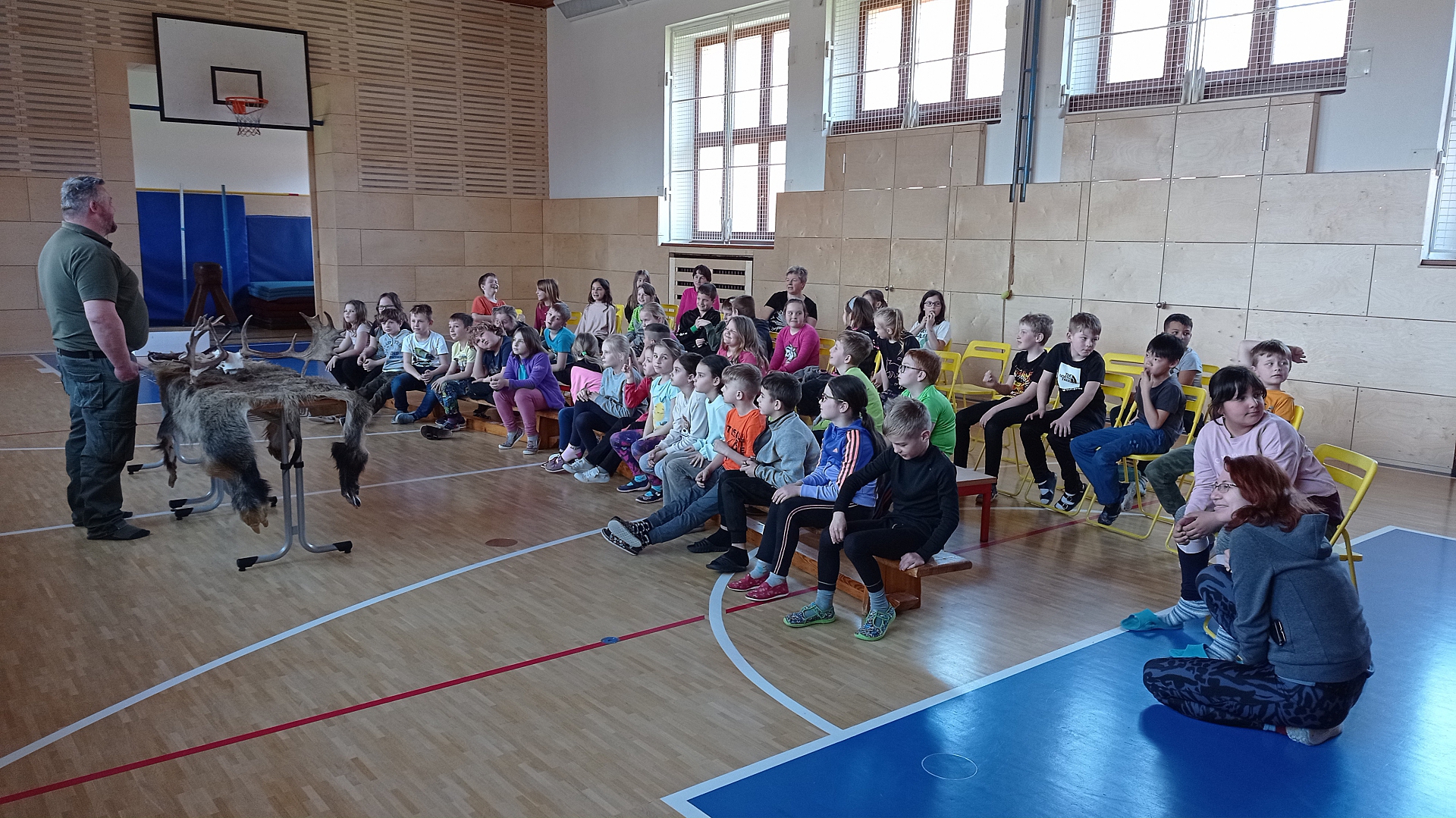 Pro mladší děti byl připraven výukový program na téma myslivost. Pan Prouza přinesl dětem ukázat například škáru z divočáka, trofeje z jelena či daňka, srnčí parůžky nebo lebky drobných šelem. Povídání bylo velmi poutavé a poučné. Na konci celého programu byl i prostor pro kladení záludných otázek.