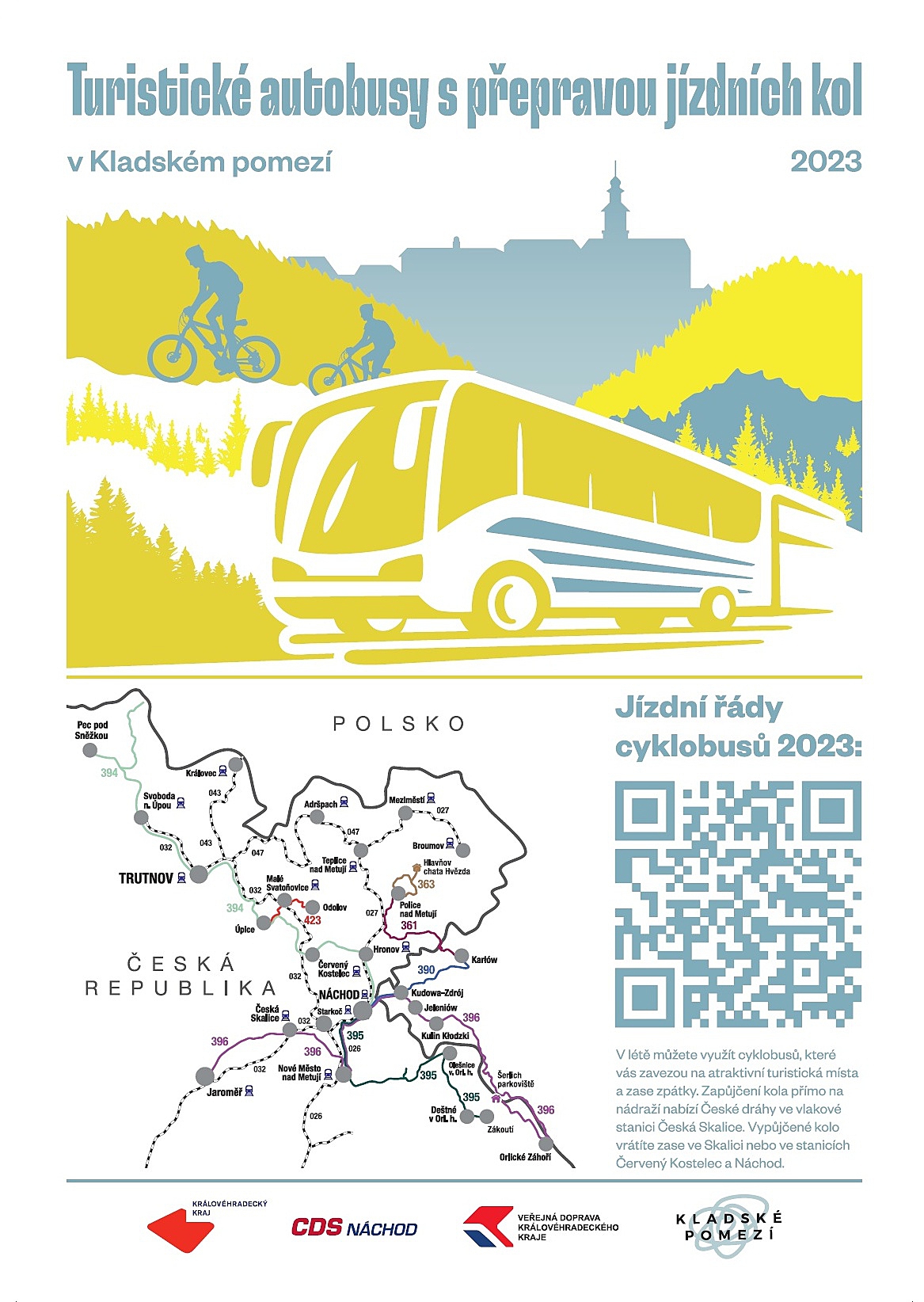 Více informací a jízdní řády najdete na www.kladskepomezi.cz/aktivity/cyklistika a na webu