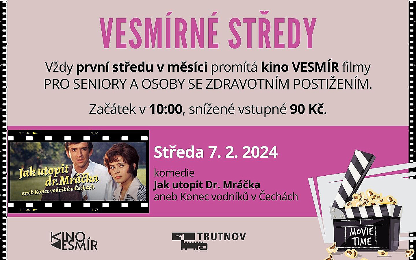 Kino Vesmír ve spolupráci s městem Trutnov připravily pravidelnou kulturní aktivitu s názvem Vesmírné středy, která je zaměřena pro seniory a osoby se zdravotním postižením. Vždy první středu v měsíci v 10:00 pro ně bude promítán film za snížené vstupné 90 Kč.
