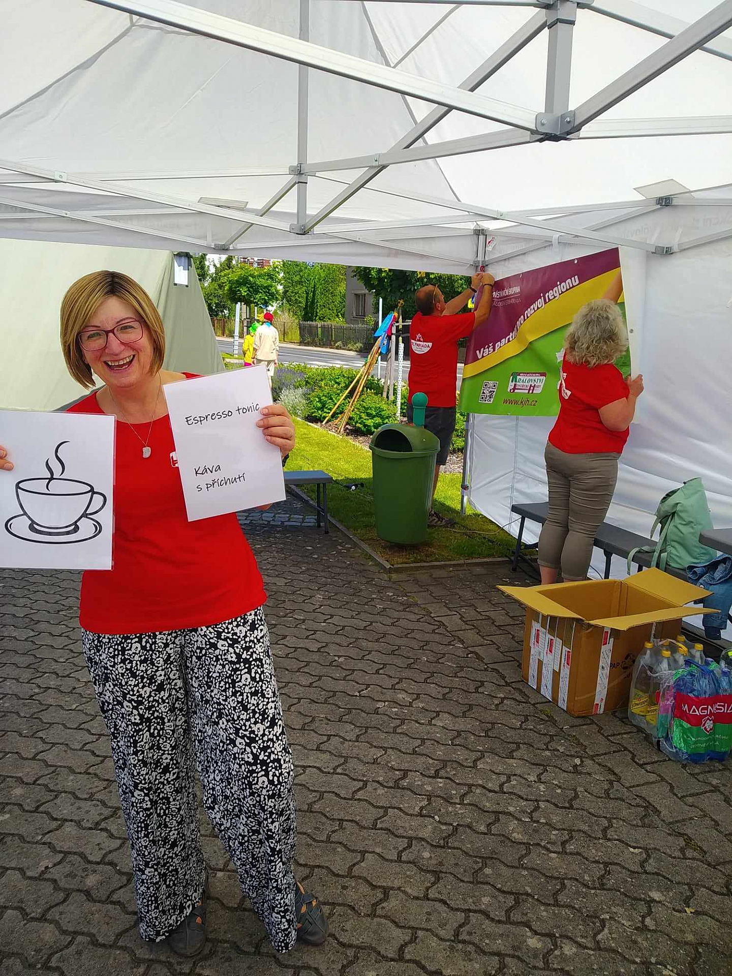 K našemu stánku jsme pozvali nejen žadatele z programu NZÚ Light, ale i širokou veřejnost. V nabídce byl moučník od Orange Catering, s.r.o. a výborná káva. Klasik v horké podobě a čím dál více oblíbený letní drink espresso tonic s příchutí.