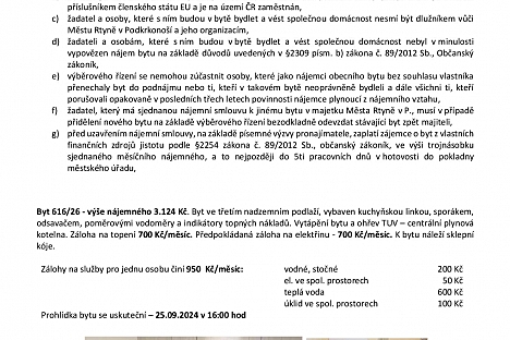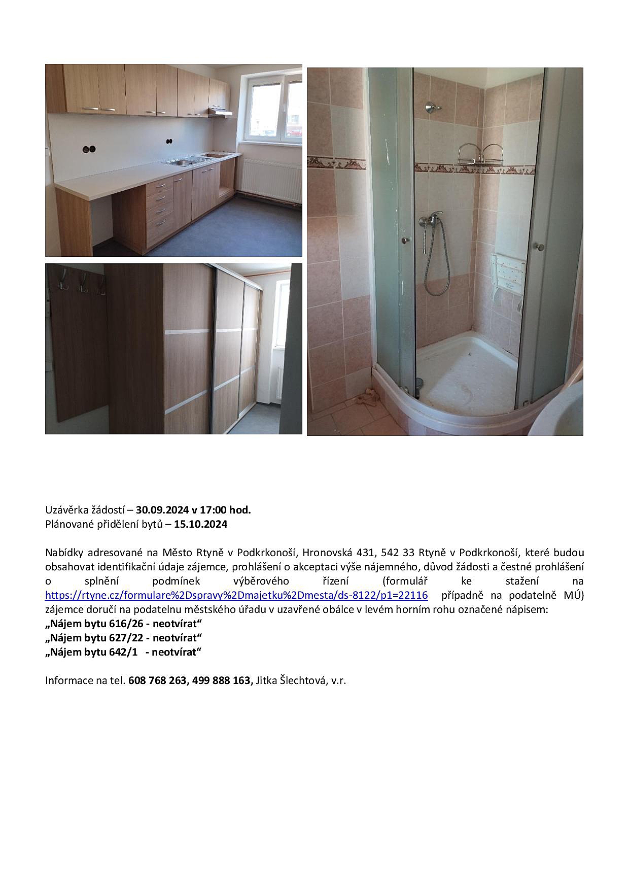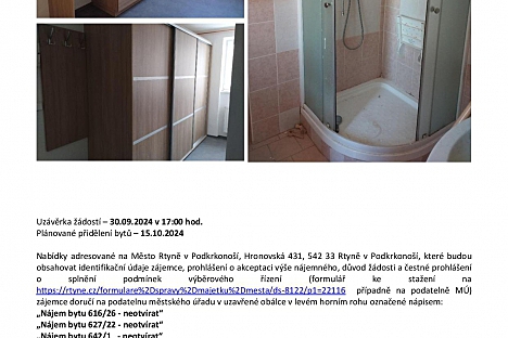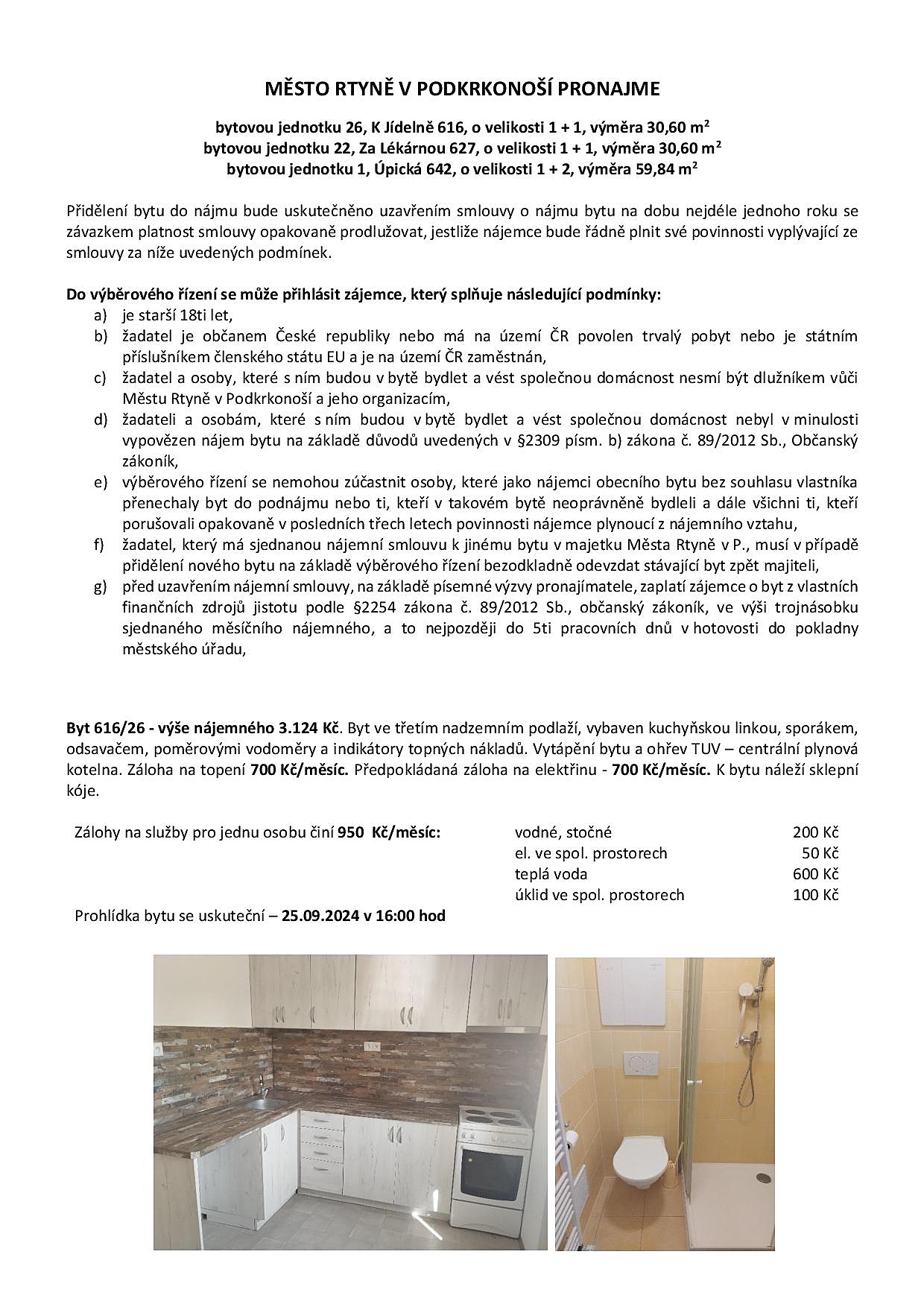 Město Rtyně v Podkrkonoší pronajme 3 bytové jednotky.