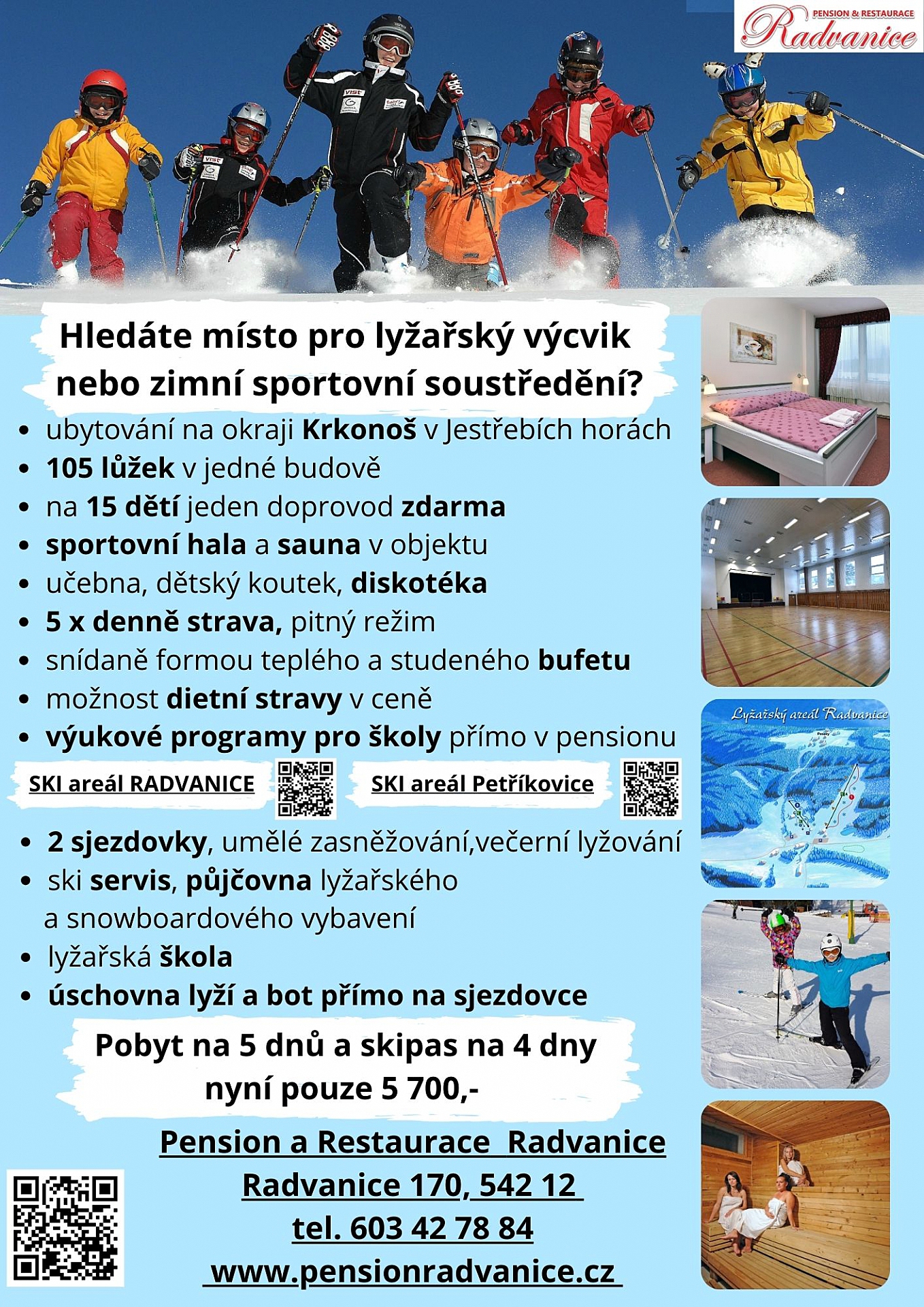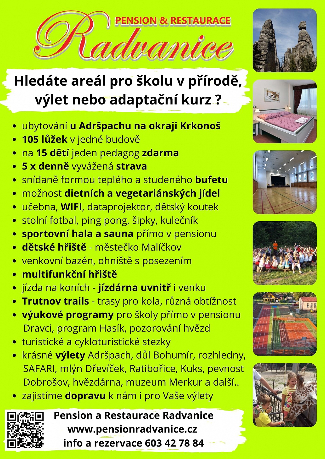 Pension & Restaurace Radvanice nabízí pestrou nabídku služeb. Mnohé z nich jsou zaměřené na školy a školky.