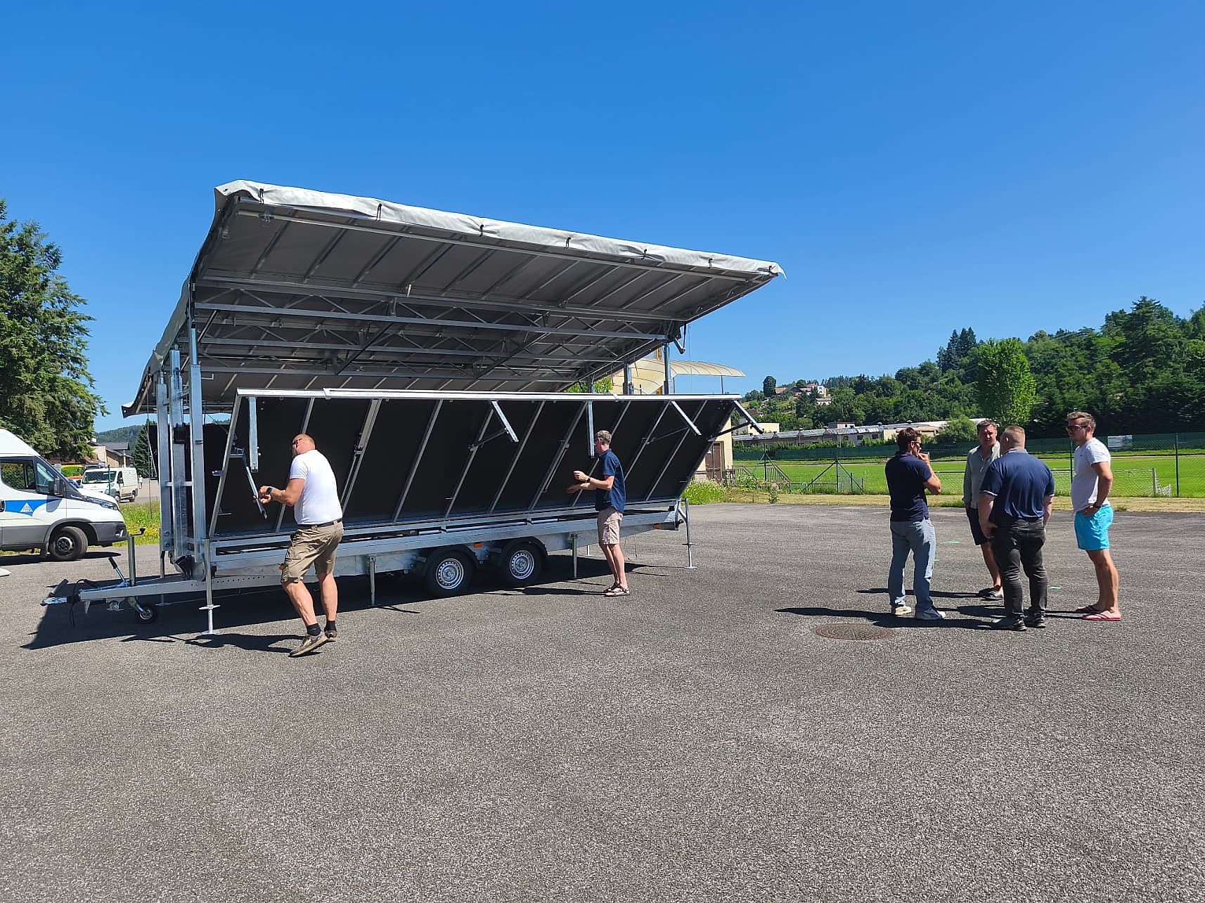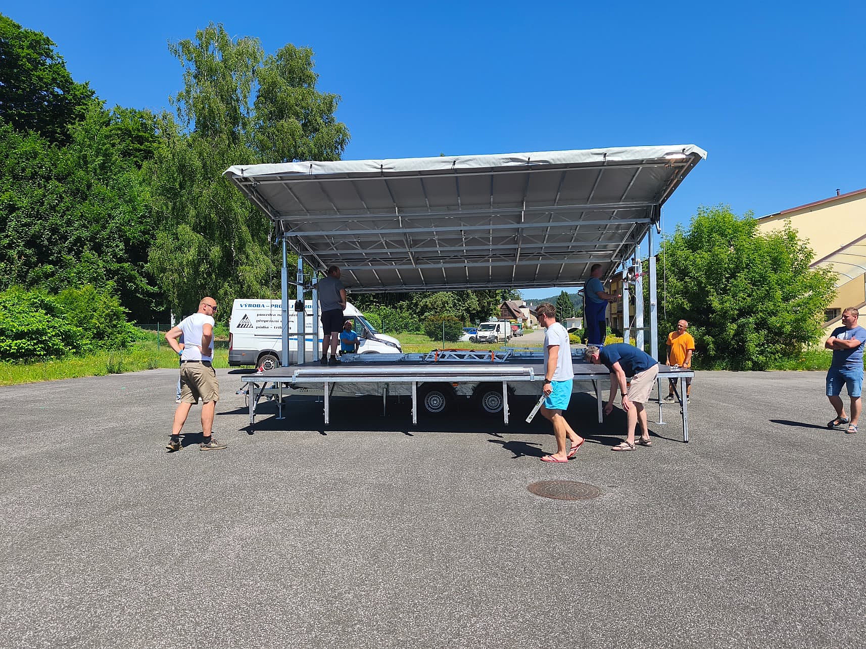 Pódium o rozměrech 6 × 6 metrů dodala firma ŠIBA s.r.o., která se specializuje na mobilní pódia a vybavení pro venkovní akce. Celý systém je navržen tak, aby jeho instalace zabrala minimální čas a nevyžadovala složitou obsluhu.