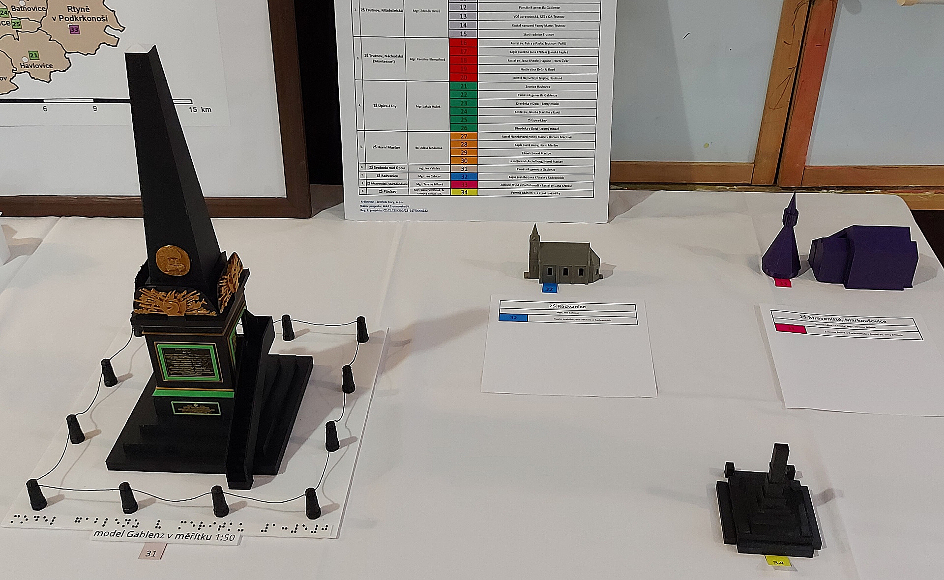 Jedním ze zlatých hřebů radvanického setkání byla výstava 3D modelů na regionální téma. K vidění bylo 34 exponátů, které předtím v rámci projektu MAP vytvořili žáci devíti základních škol z Trutnovska. Modelovali například trutnovský památník Gablenz, rozhlednu Eliška u Žacléře, úpickou Dřevěnku, havlovickou zvoničku anebo například zámek v Horním Maršově.