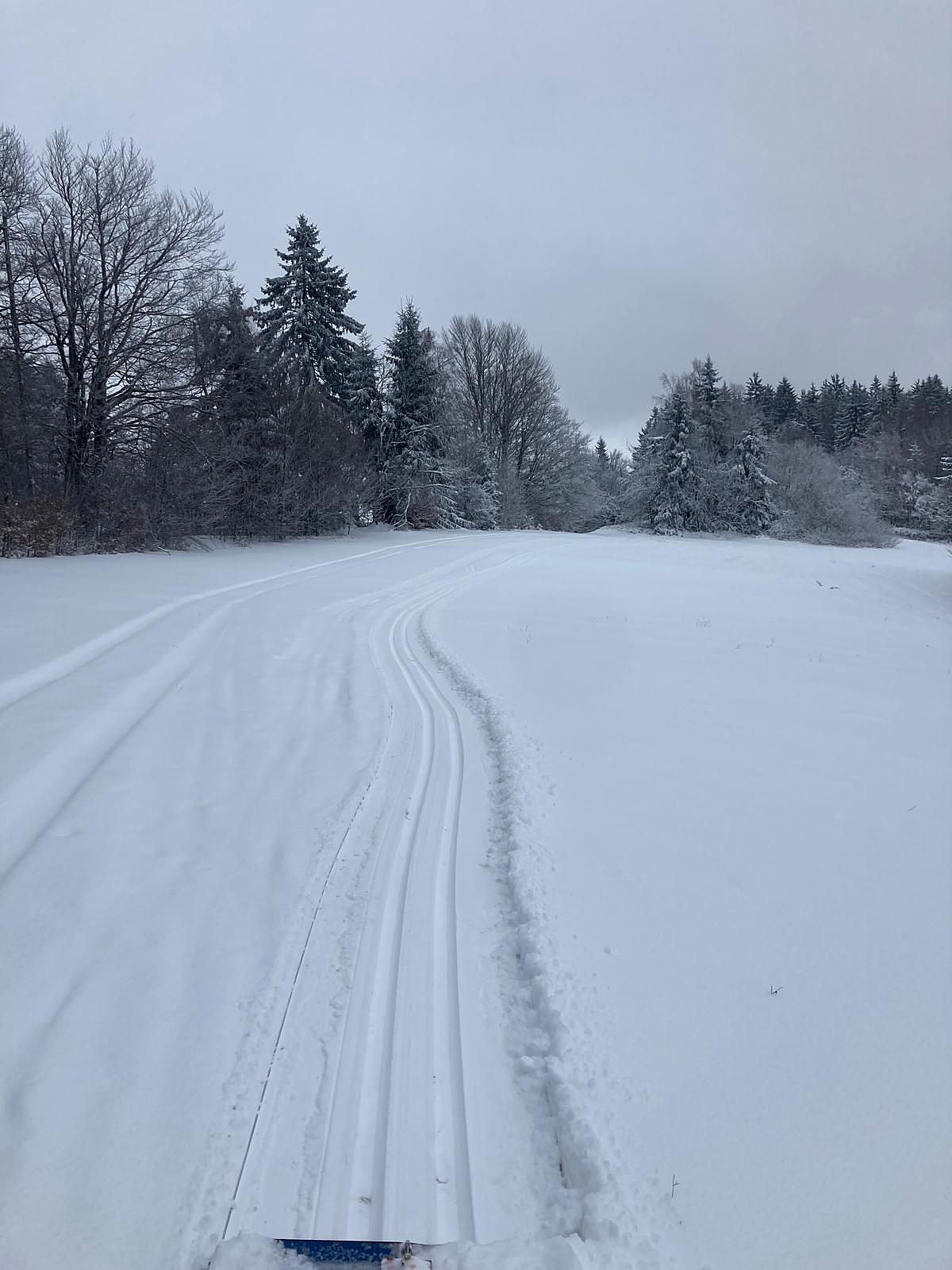 Stále doporučujeme zvolit horší lyže-místy je trať vyfoukána.