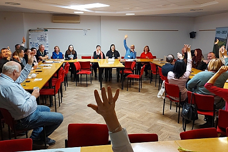 Zpestřením prvního dne byla exkurze do Pilníkova, který účastníkům svým nezaměnitelným způsobem představil starosta Josef Červený. Město v podhůří Krkonoš vyhrálo loni v celostátním kole Oranžovou stuhu. Není divu, spolupráce radnice s místními zemědělci je příkladná. Součástí výjezdu byla návštěva Skutilových a Ciprových, úspěšných pilníkovských farmářů. Odpolední blok prezentací představil Kosovu Horu. Malebná středočeská obec vyválčila v celostátním kole Vesnice roku 2025 stříbrnou pozici. Ředitelkou celostátní komise soutěže bude letos Veronika Šťastná, místostarostka jihočeského Vacova, který Vesnici roku vyhrál v roce 2024. Malebná obec s velkou pospolitostí se ve Dvoře Králové prezentovala i poutavým videem. „Náš starosta František Čtvrtník se mnou nemohl přijet, tak jsem vám ho aspoň vytiskla na papír a nechávám kolovat,“ pravila s úsměvem Veronika Šťastná a ještě vylepšila už tak dost příjemnou a uvolněnou atmosféru v sále.