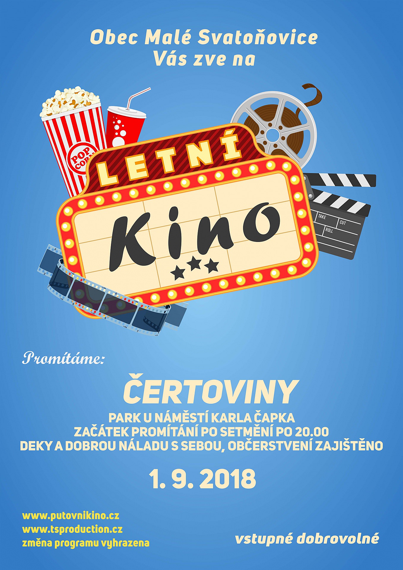 Přijďte do parku u náměstní Karla Čapka 1. 9. 2018 na letní kino. Promítat se bude film Čertoviny. Vstupné je dobrovolné. Deky a dobrou náladu s sebou, občerstvení zajištěno. Více informací na plakátu.