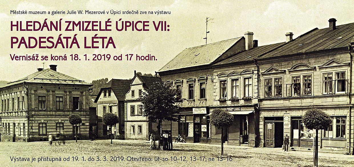 Městské muzeum a galerie JWM srdečně zve na další pokračování výstavního cyklu Hledání zmizelé Úpice. Tentokrát je pro Vás připravena fotografická exkurze do let padesátých, se vším, co toto desetiletí městu Úpice přineslo. Výstava se koná na staré radnici.