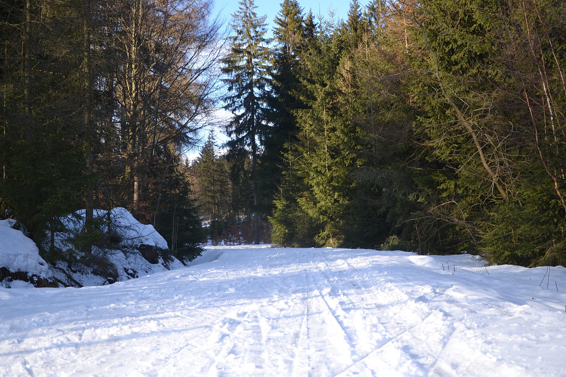 Po včerejším ranním chumelení nám lehký poprašek zakryl větvičky a jehličí v úseku Odolov – Bílý Kůl.