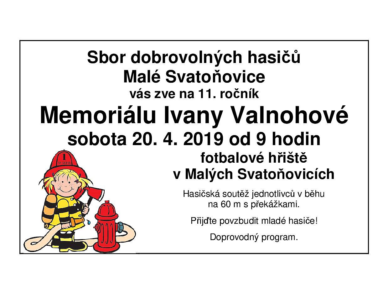 Sbor dobrovolných hasičů Malé Svatoňovice zve na 11. ročník MEMORIÁLU IVANY VALNOHOVÉ.