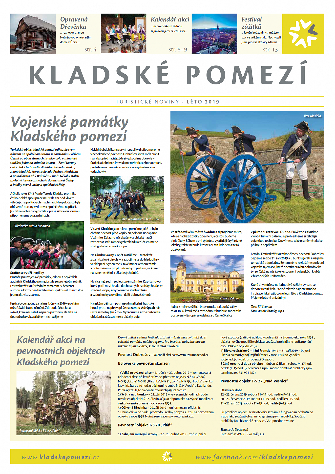 Festivalu zážitků, největší události letošního léta v Kladském pomezí, je věnována dvojstrana, která seznámí nejen s kompletním programem, ale i možnostmi jak získat odměnu či být součástí mimořádného zážitku. Nechybí ani cestovatelská hra Toulavý baťoh a novinky z projektu Čapek.