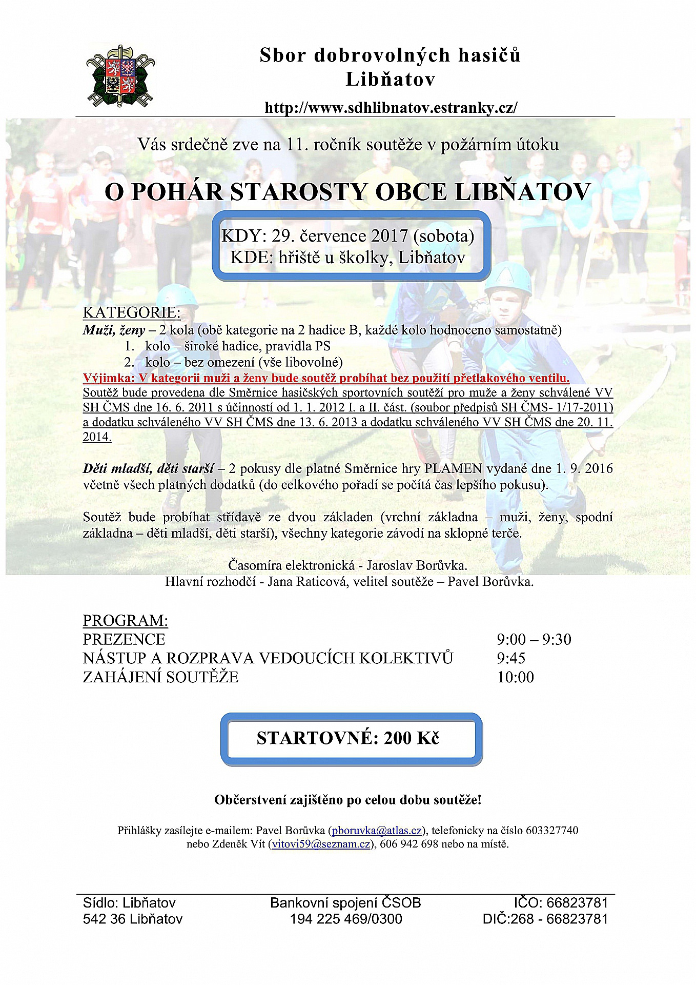 Soutěž v požárním útoku v několika kategoriích - hraje se o pohár starosty Libňatova.