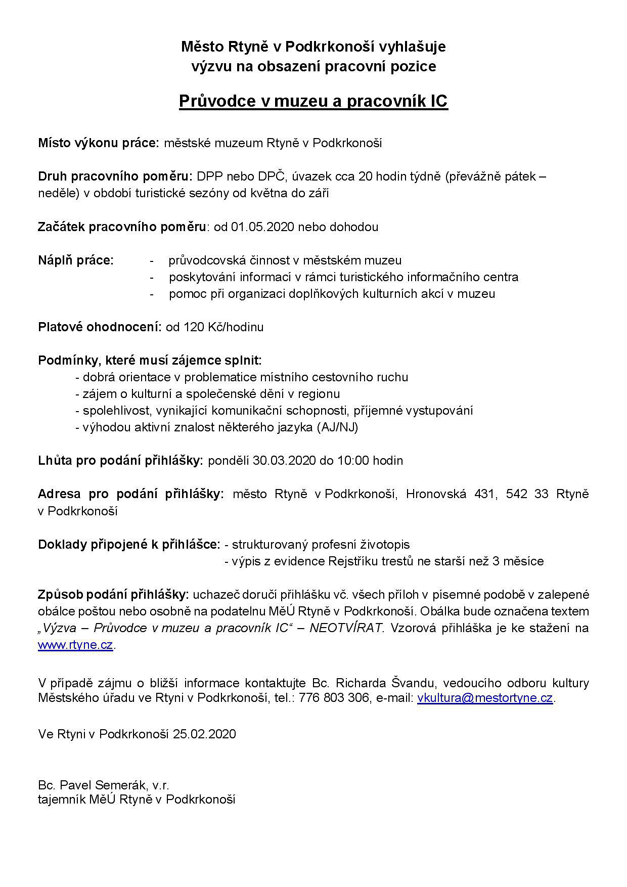 Termín: Út 25.02.2020 - Pá 01.05.2020 / Publikováno: Út 03.03.2020