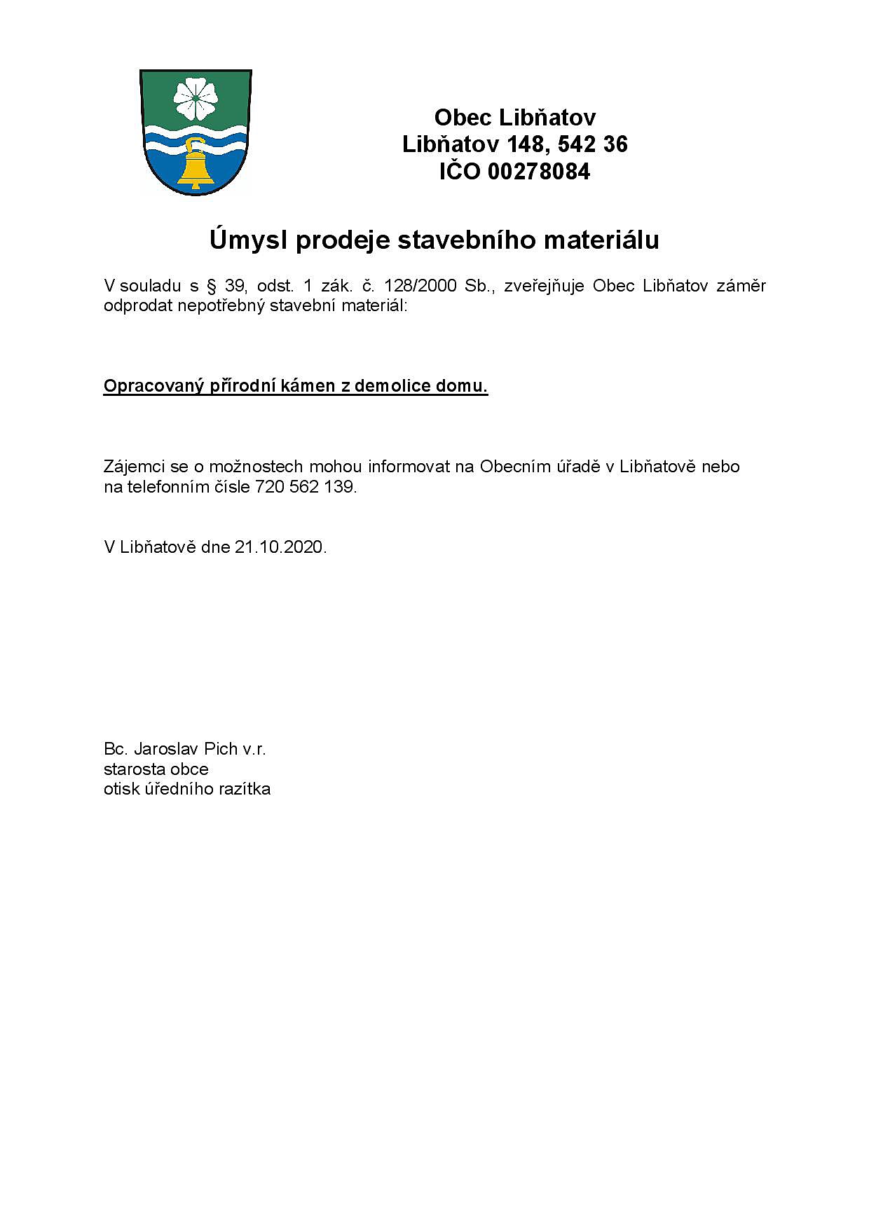 Obec Libňatov nabízí přírodní kámen z demolice domu.