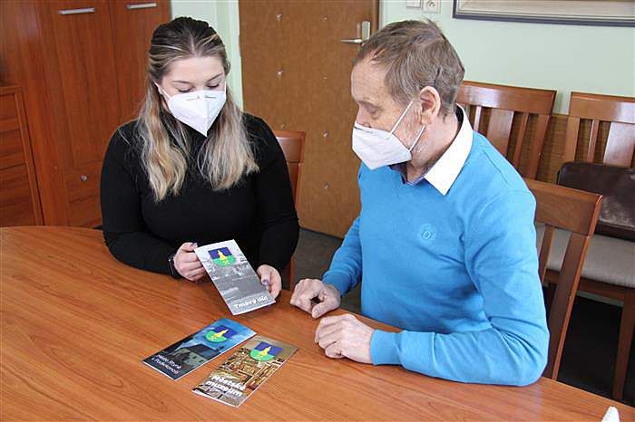 Referent kultury Kristýna Pokorná představuje starostovi města Zdeňku Špringrovi nové propagační materiály, které jsou nově aktualizované a jsou jako jedna z novinek pro letošní sezónu. Město Rtyně v Podkrkonoší chce totiž nalákat turisty a ukázat jim, proč se do našeho regionu vracet. Tři druhy těchto materiálů budou během sezóny k dispozici v turistickém informačním centru. Díky nim si tak budou moci cestovatelé vybrat z široké nabídky možností jak příjemně strávit čas při návštěvě našeho města. Zájemci o historii jistě sáhnou po novém letáku, který v kostce seznamuje s táborem nucených prací na Tmavém dole.