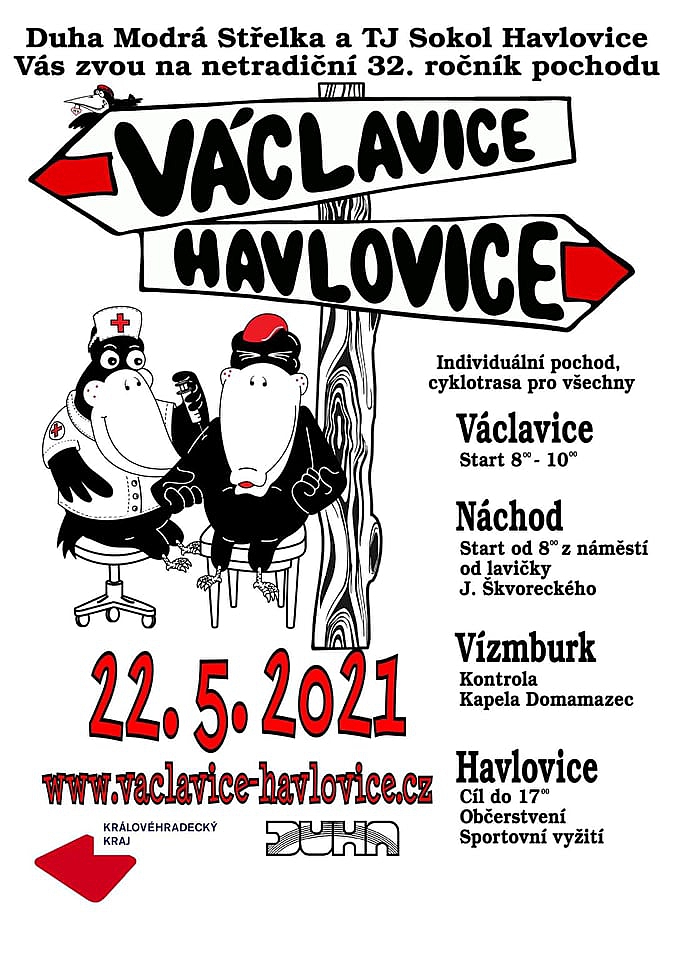 Duha Modrá Střelka a TJ Sokol Havlovice Vás zvou na netradiční 32. ročník pochodu VÁCLAVICE - HAVLOVICE.